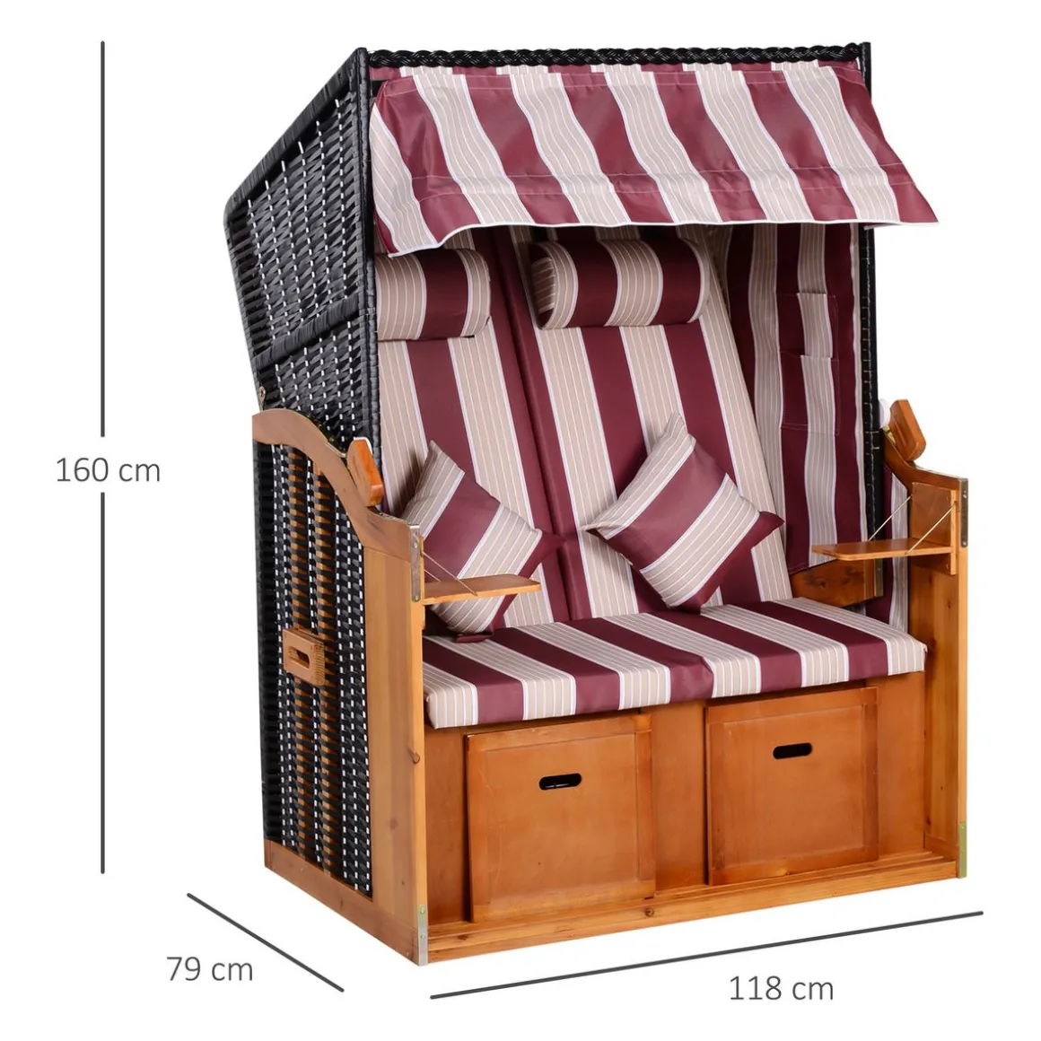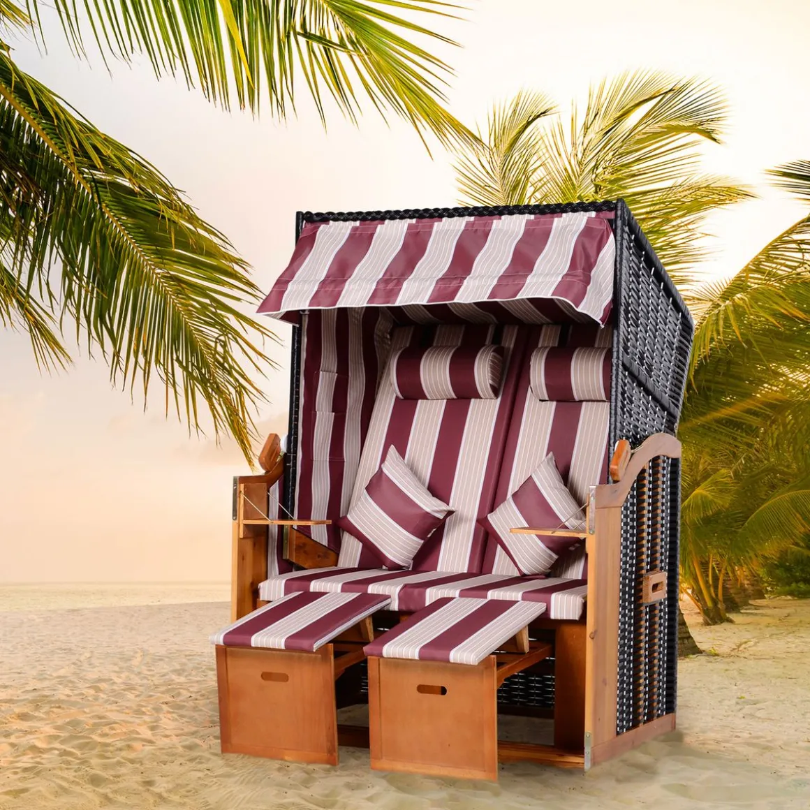 – Magnifique corbeille de plage 2 places grand confort style strandkorb qui sublimera votre jardin, terrasse, bord de piscine ou autre et épatera vos convives !