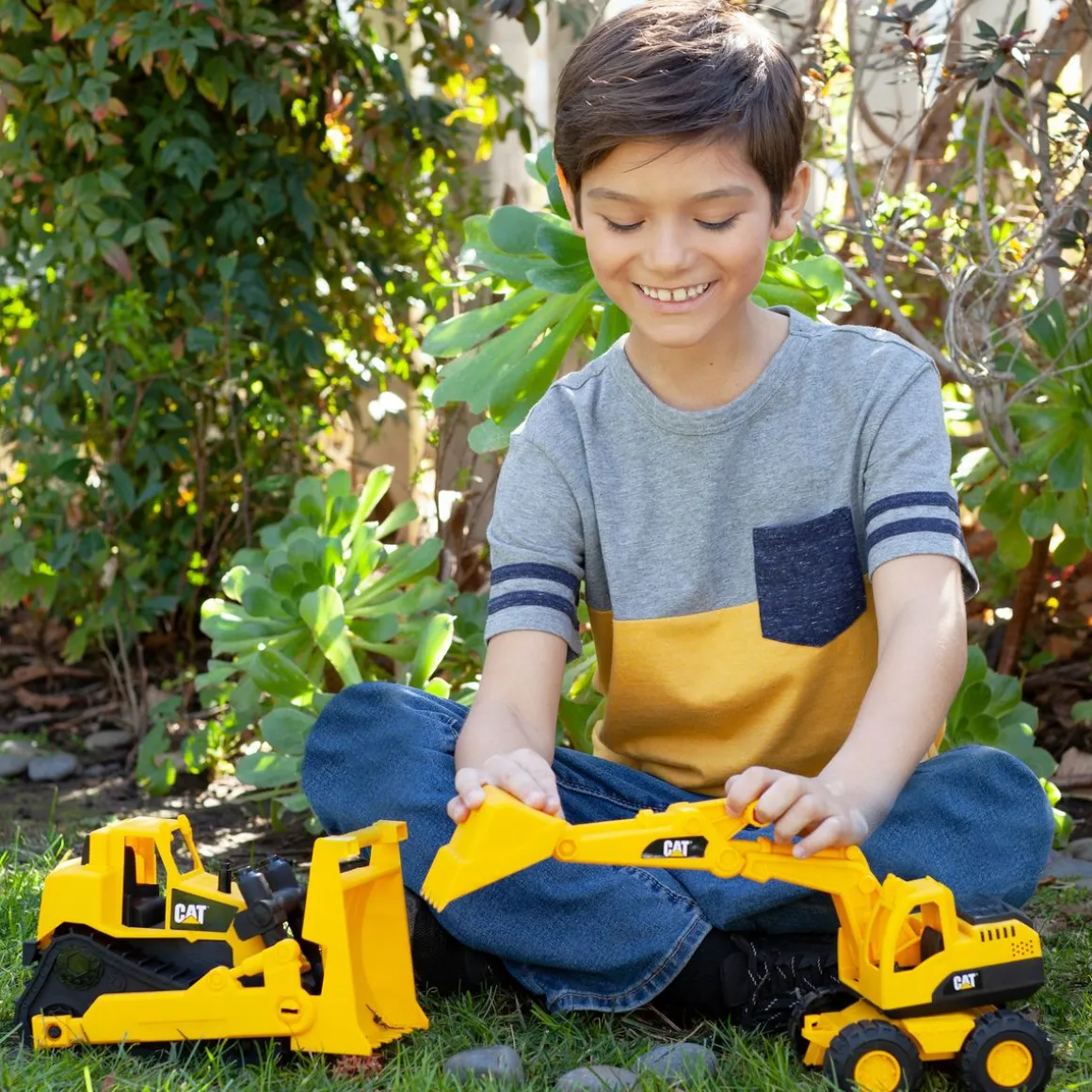 Bâtissez des aventures grandeur nature avec le Pack de 4 véhicules 25cm CAT, et laissez les jeunes esprits s’élever au milieu des pelleteuses et des camions benne !