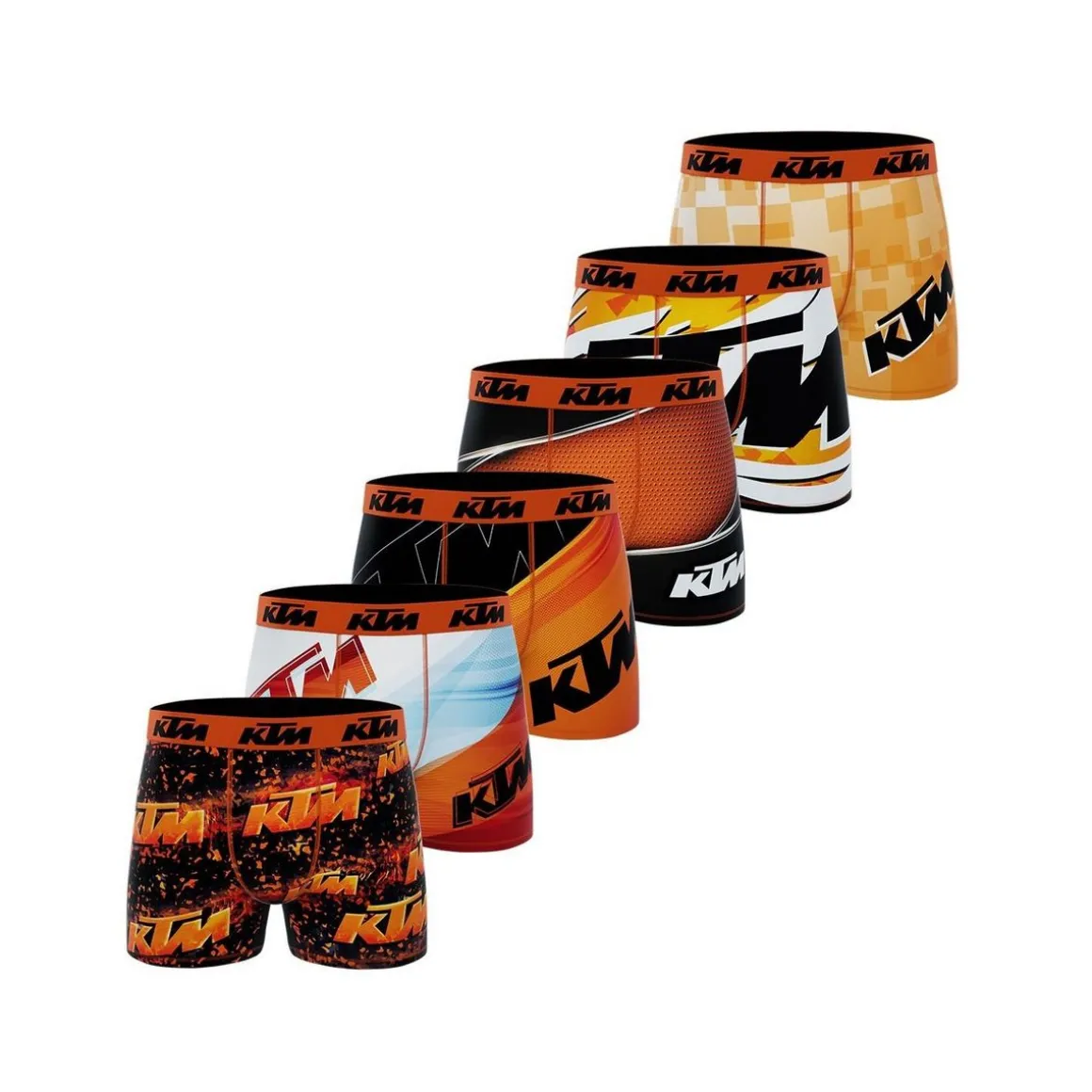 Si tu adores les surprises, ce pack est fait pour toi ! Ce pack surprise de 6 boxers KTM est parfait si tu as le goût de l’inconnu ! Dans ce pack se trouve des boxers colorés et confortables imprimé. L’élastique des boxers KTM t’assure d’avoir un boxer qui s’ajuste parfaitement bien à ta taille.