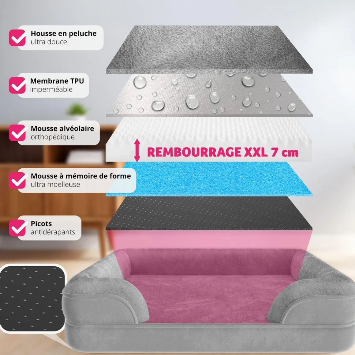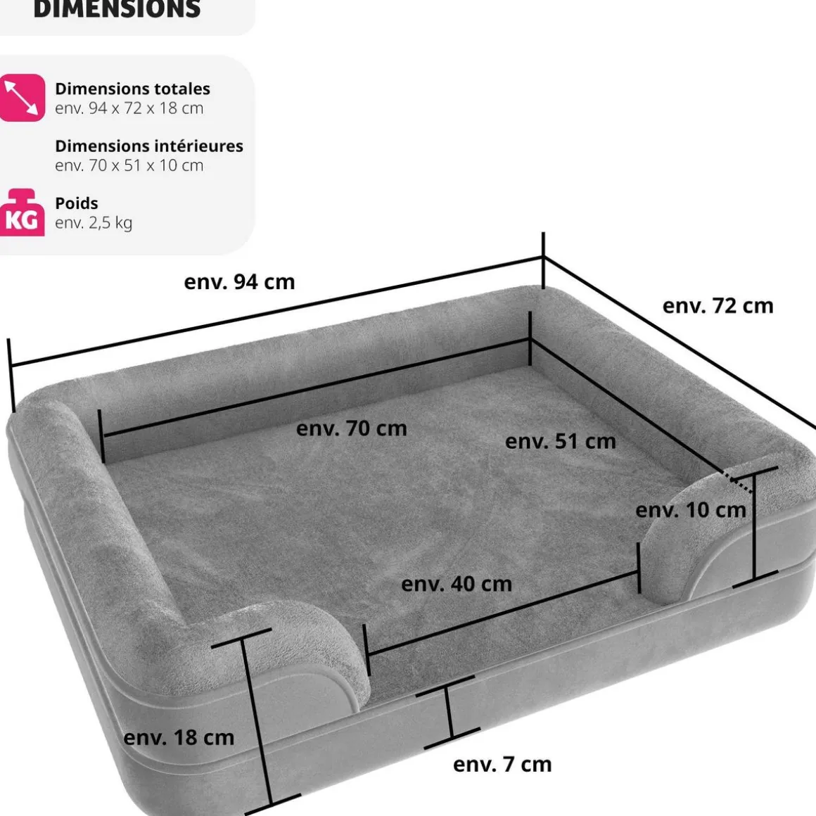 - Épaisseur du rembourrage : env. 7 cm