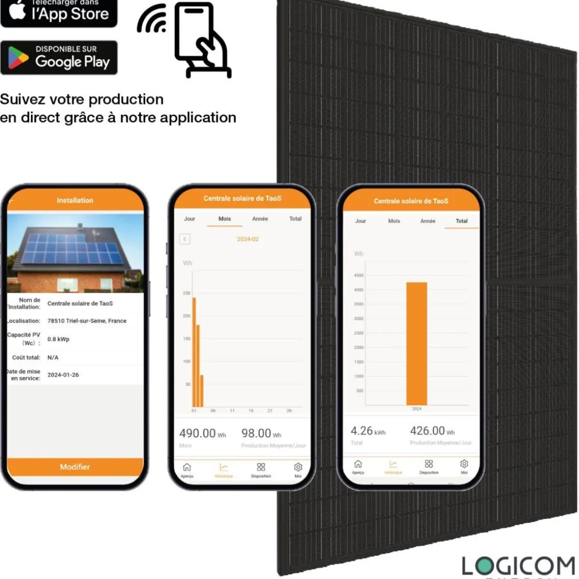 | Avantage | Kit solaire rigide 410W Full black Cellules PERC avec support inclus pour fixation universelle (sol, toit plat, mur, balcon, clôture). Module Plug & Play – Suivez-votre production à distance grâce à notre application TSUN SMART. | |