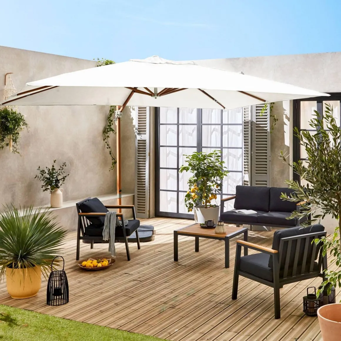 Ce grand parasol déporté de forme rectangulaire (3 x 4 m), est l’accessoire indispensable de votre jardin ou votre terrasse, pour parer efficacement au soleil.
