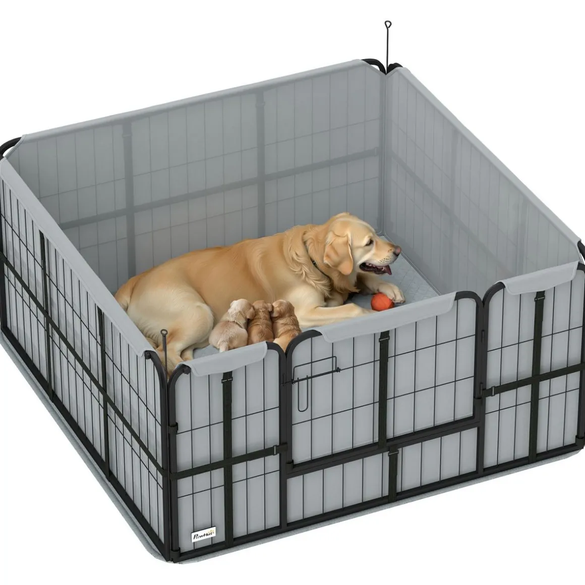 – Le tissu Oxford 600D du parc de mise bas pour chien offre une protection contre le vent et inclut un tapis de propreté lavable