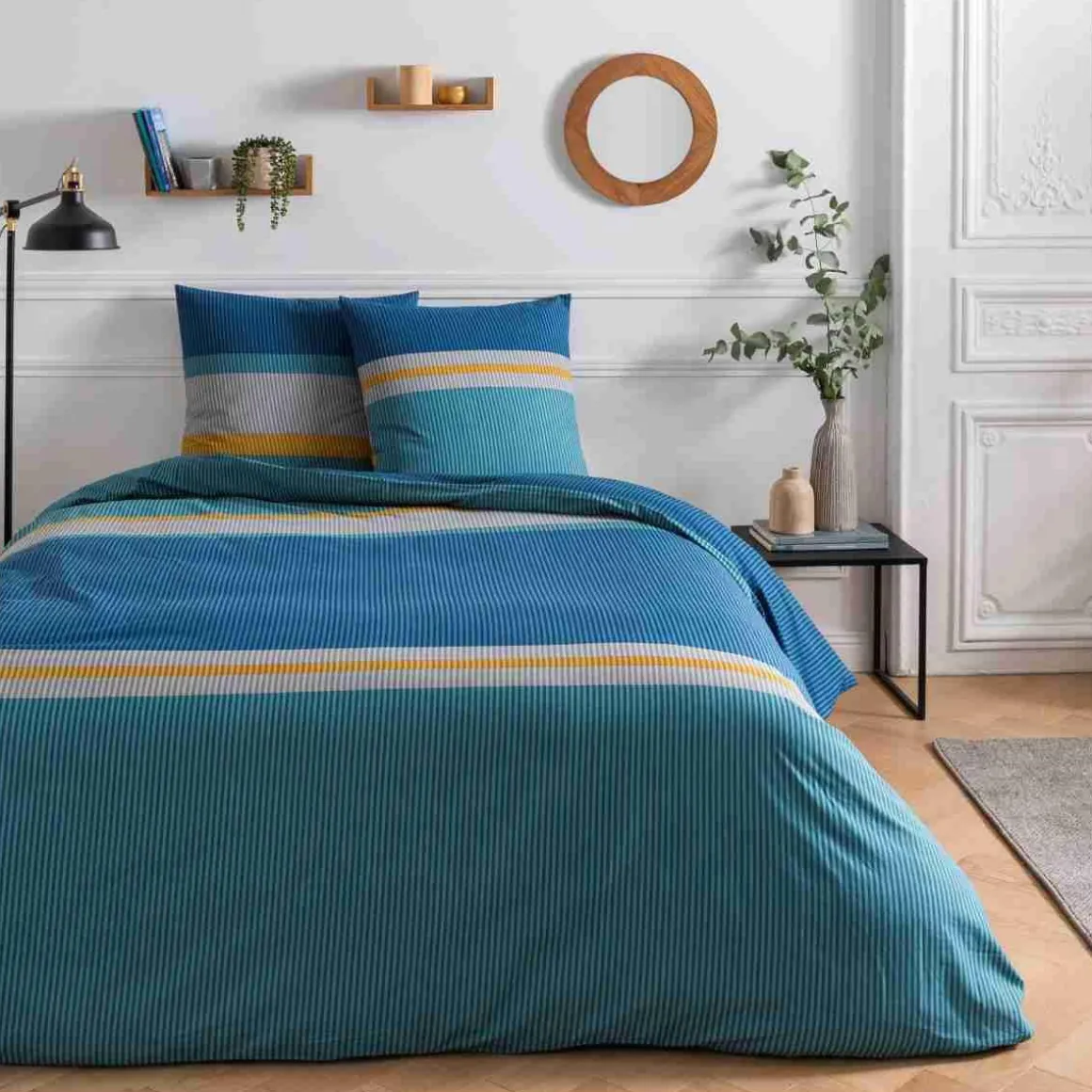 Avec notre parure de lit OSCAR en 100% coton, nous avons opté pour un motif à rayure.
