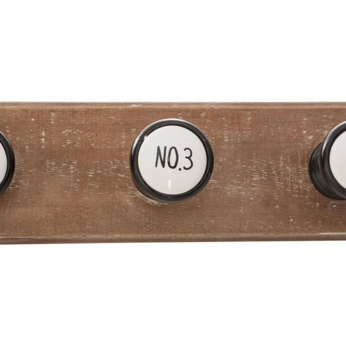 Patère céramique 6 crochetsRavivez vos souvenirs d’enfance avec cette patère céramique 6 crochets numérotés tout droit venue des bancs de l’école primaire d’antan. Dotée de 6 crochets, cette jolie patère altique couleur bois foncé et blanc vous permettra de suspendre vos vêtements.Informations sur la patère céramique 6 crochets :Composition : bois, grès6 crochets numérotésDimensions totale : 66 x 8,5 x 8,8 cmPoids : 1,6 kg