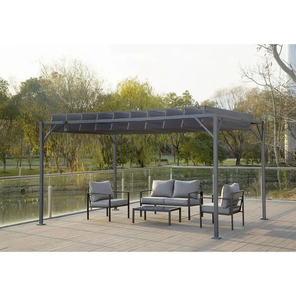 Pergola bioclimatique en tissu 3 x 4 m – Anthracite:
