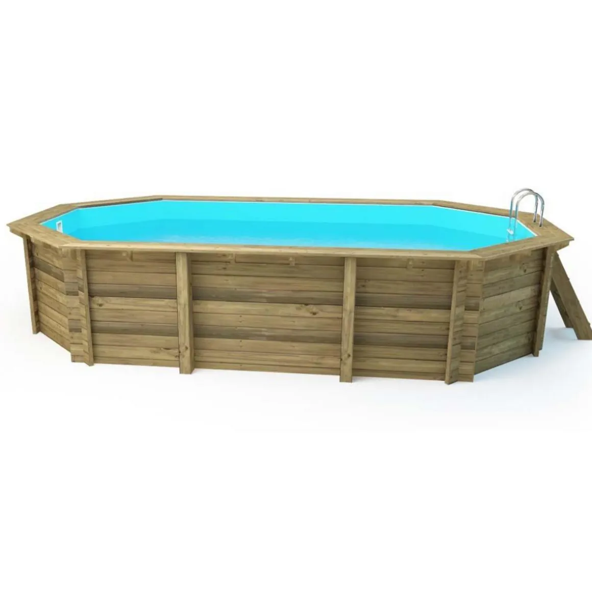 De forme octogonale allongée cette belle piscine de 6.57 x 4.57 x 1.31 m livrée avec de nombreux accessoires: un liner 75/100 ème, une filtration 6 m3/h, des margelles en pin . De plus, cette piscine est une production Européenne garantie FSC. Structure : Piscine en pin du Nord, traitement autoclave alte IV FSC.