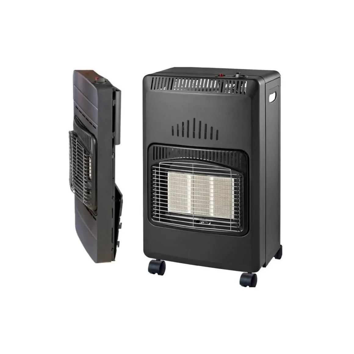 Ce chauffage d’appoint fonctionne avec du gaz butane. Une bouteille de 13kg est préconisée, le détendeur butane et le tuyau vissable ne sont pas fournis
