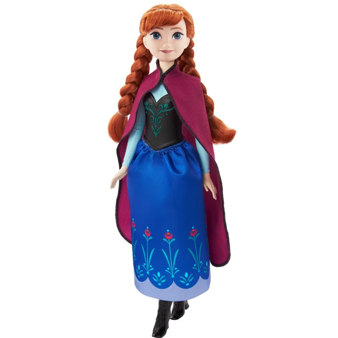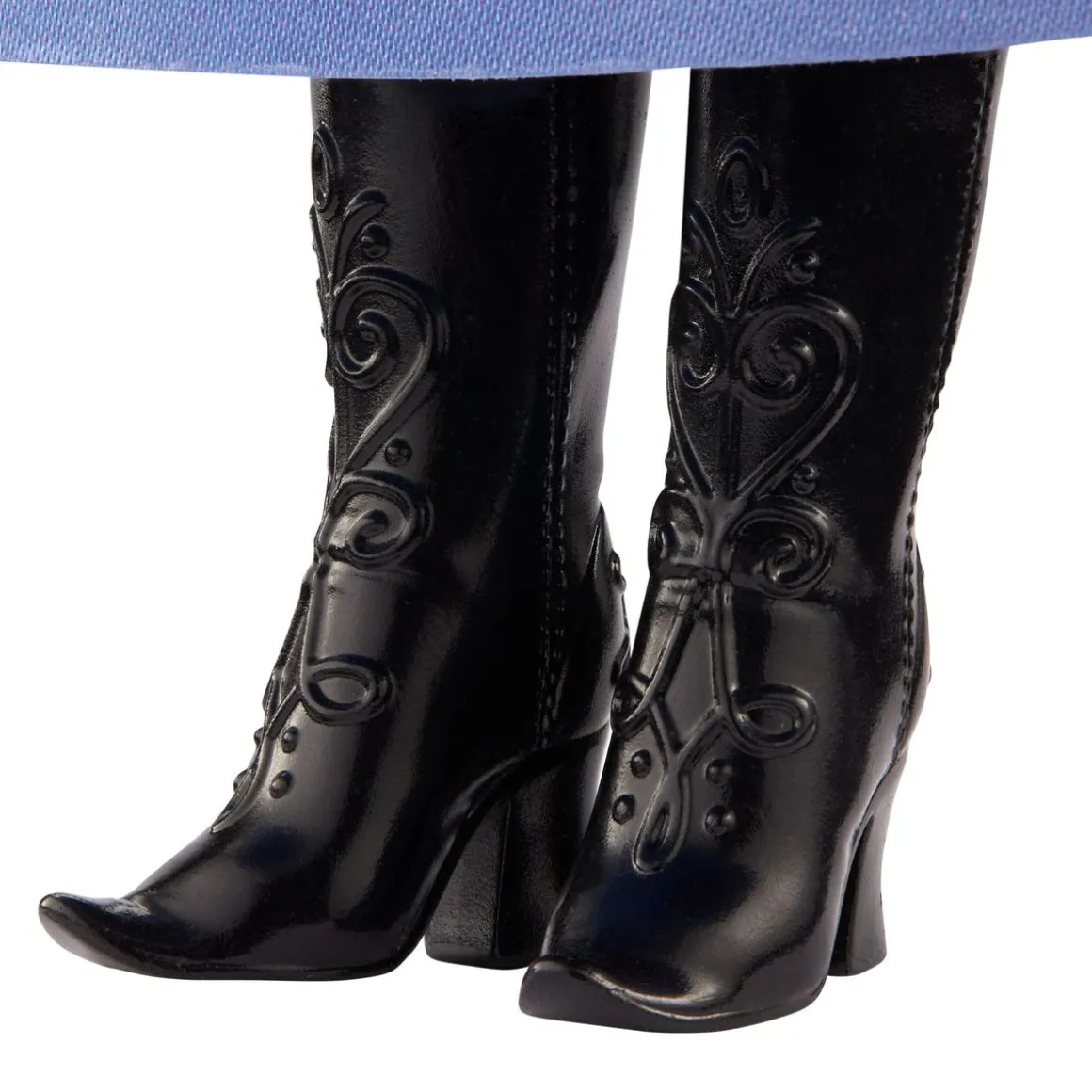 Cette figurine est habillée dans la tenue de voyage emblématique d’Anna, comprenant des chaussures, une jupe et une cape en tissu.