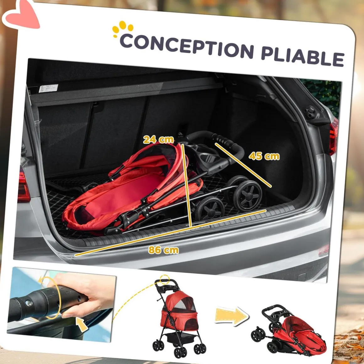 – Dim. pliées : 86L x 45I x 24H cm
