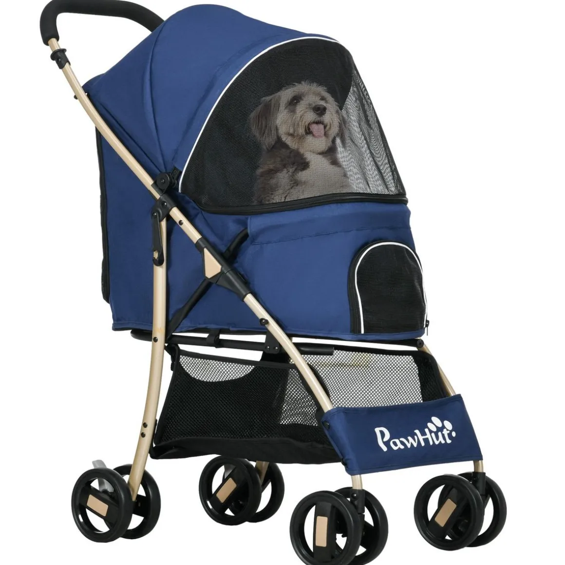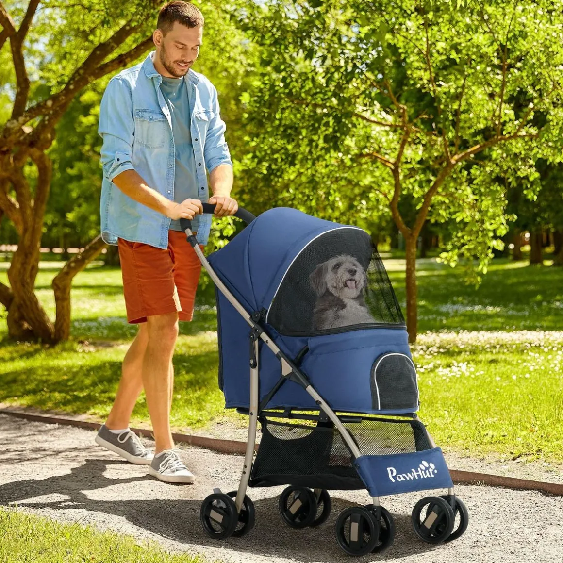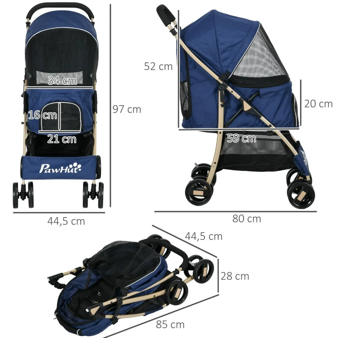 – Poussette pour chien pliable avec panier inférieur et sac zippé pour le rangement