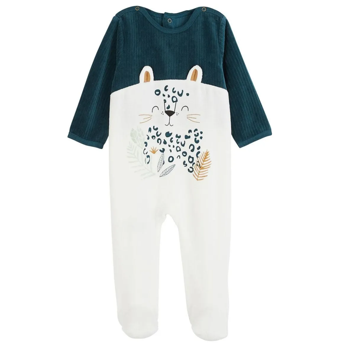 Retrouvez notre petit Léo, cet adorable léopard, sur ce pyjama tout doux en velours côtelé, il accompagnera bébé tout au long de ses nuits. Le petit + fantaisie : les petites oreilles du léopard sont en relief ! Pieds antidérapants à partir de la taille 12 mois -inclus- Produit labellisé STANDARD 100 by OEKO-TEX ® (BJ020 189402 TESTEX)