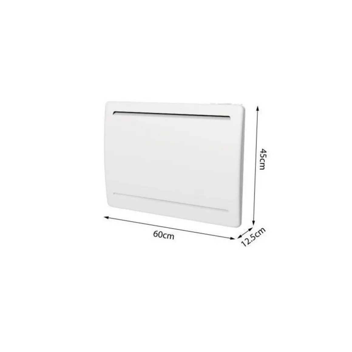 OCEANIC Radiateur électrique fixe a inertie seche – Puissance calorifique 1000 W – Design galbé – Coeur de chauffe : Pierre céramique – Façade en acier – Fil pilote 6 ordres – Thermostat électronique – Affichage digital – Programmation journaliere et hebdomadaire – Verrouillage parental – Blanc