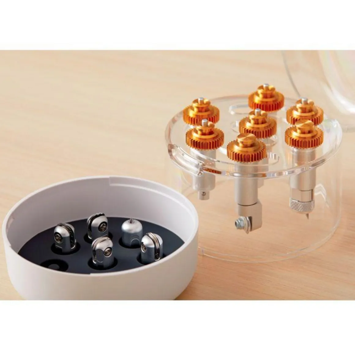 Grâce à cette boîte rangez toutes vos pointes et ne les perdez plus ! Elle pourra également vous servir pour les transporter sans les abîmer ! Avec ses 10.5 cm x 9.5 cm elle peut contenir 10 outils Cricut et 9 pointes Quick Swap. Référence Cricut : 2008606