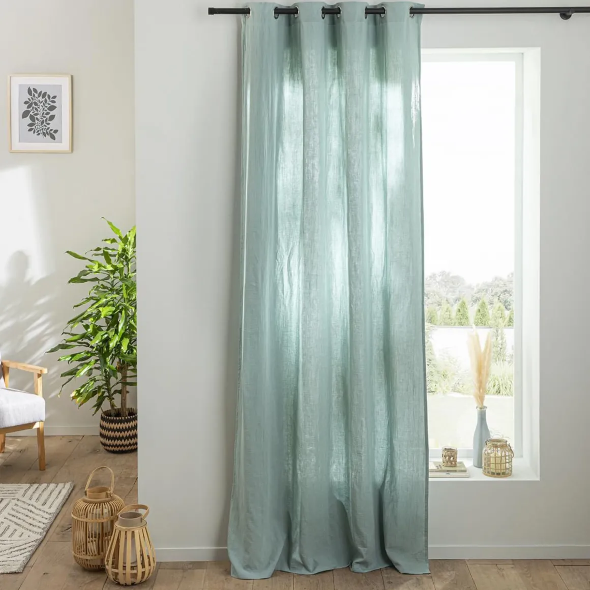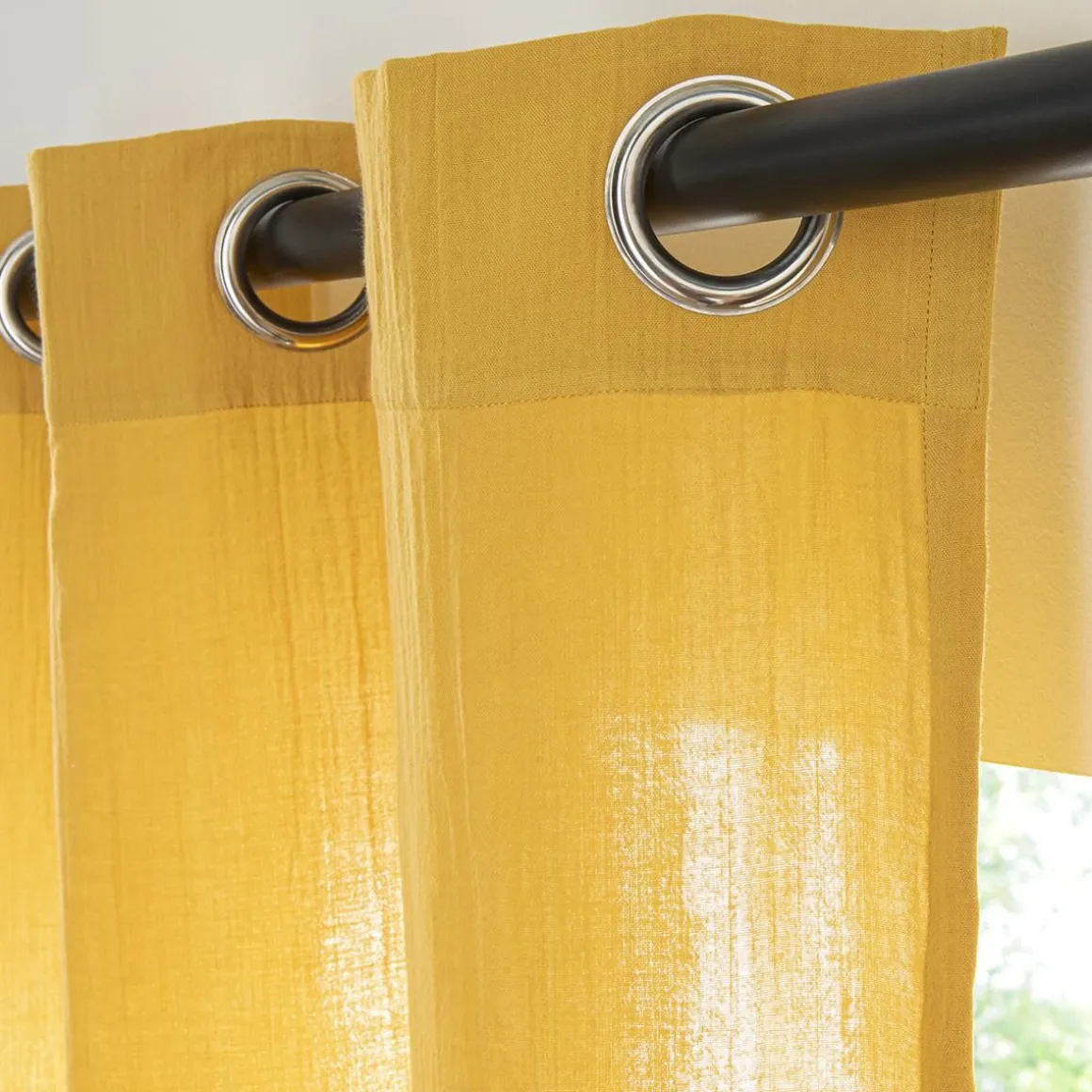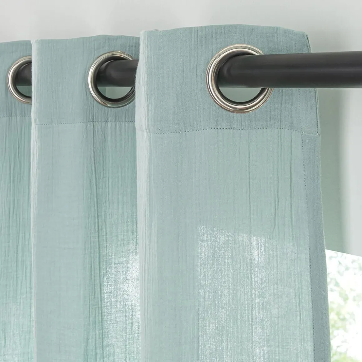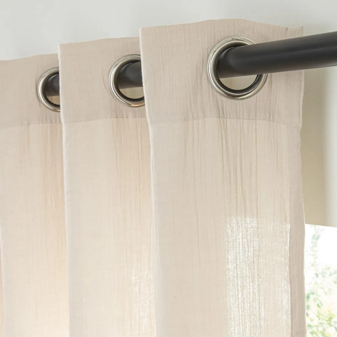 Rideau en gaze de coton vendu à l’unité, monté sur œillet en métal 140×260. Légèrement opaque, ce rideau tombe parfaitement. Un rideau monté sur œillets passe tringle pour une installation facile sur la barre à rideaux.