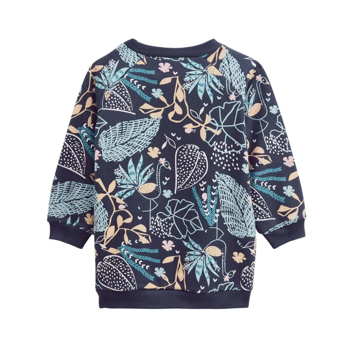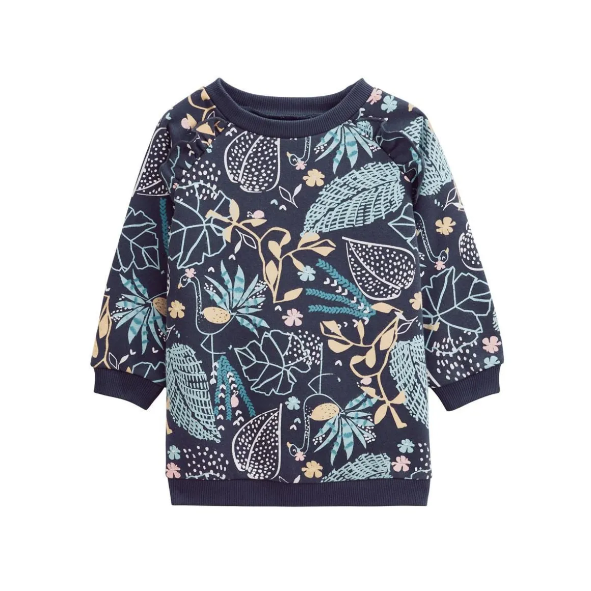C’est la robe de la saison ! Confortable et stylé, cette robe sweat met en avant un imprimé fleuri et une couleur bleue marine hyper tendance ! Sans compter ses petits volants au niveau des épaules. On craque déjà, pas vous ? Produit labellisé STANDARD 100 by OEKO-TEX ® (BJ020 189402 TESTEX) En molleton tout doux