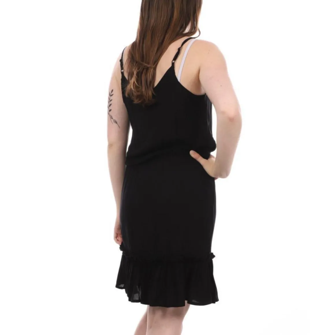 Craquez pour la robe femme de la marque Sublevel Bretelles ajustables Col rond Taille élastique Volants sur le bas Coloris : Noir Composition : 100% viscose