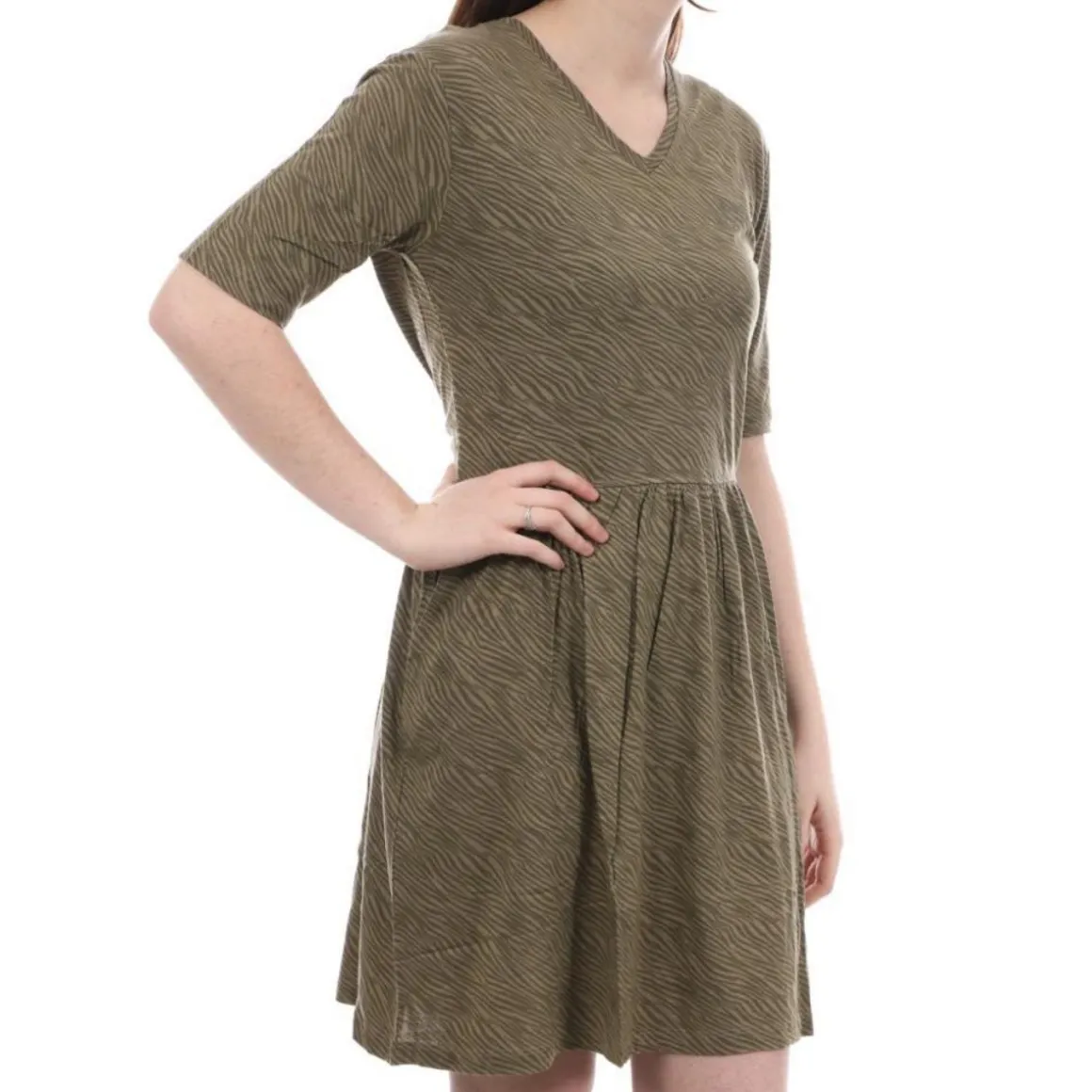 Optez pour la robe femme de la marque Lee Cooper Manches courtes Col V Coupe ample Imprimé zèbre Coloris : Kaki Composition : 100% viscose