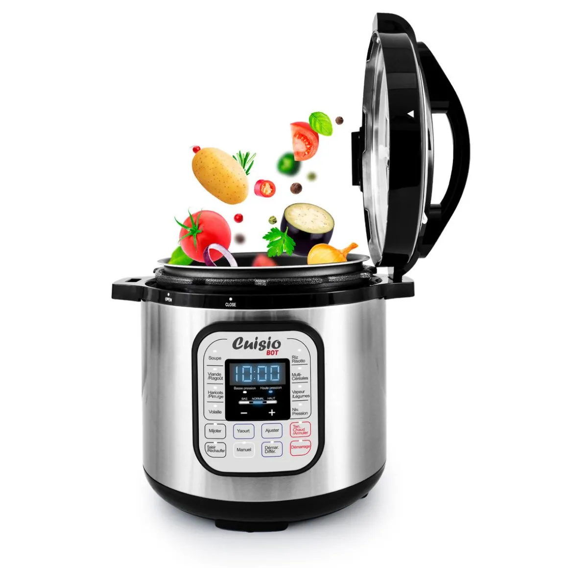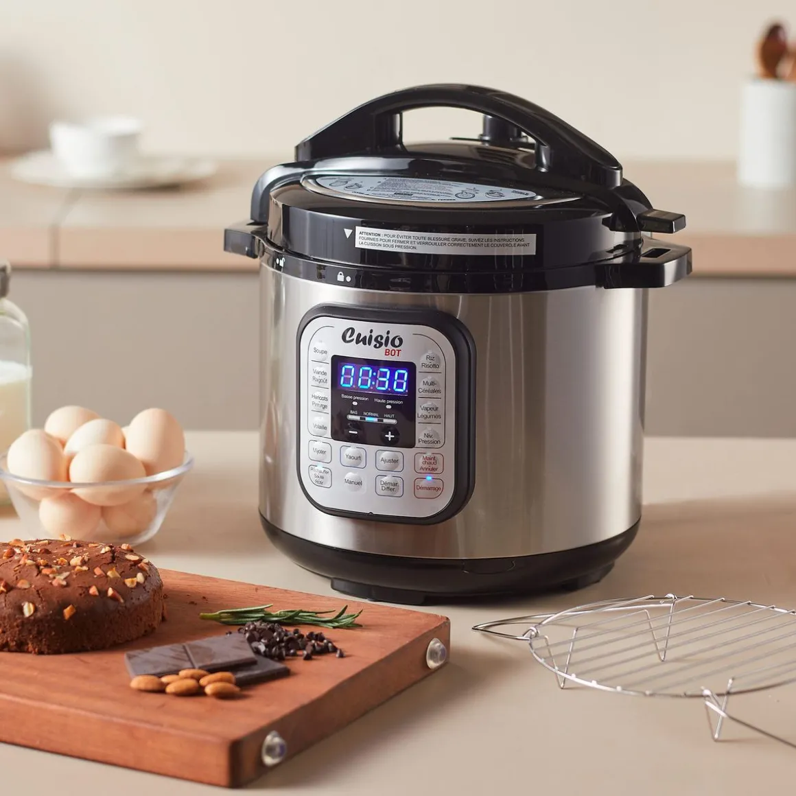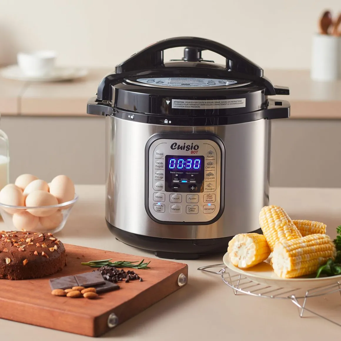 Le robot cuiseur cuisson haute et basse pression CUISIO_BOT vous permet aussi d’exploiter 17 programmes préréglés parmi lesquels on retrouve les fonctionnalités les plus usuelles comme la cuisson de riz, de soupe, de risotto, mais également les préparations en mode sauter, rôti, vapeur, viande sans oublier la confection de yaourt, la cuisson de ragoût, de multigrain …