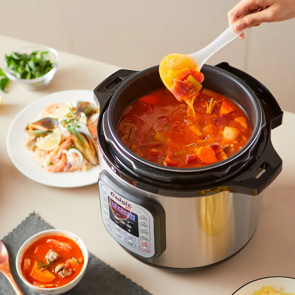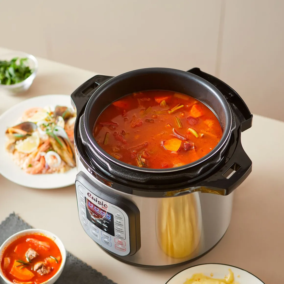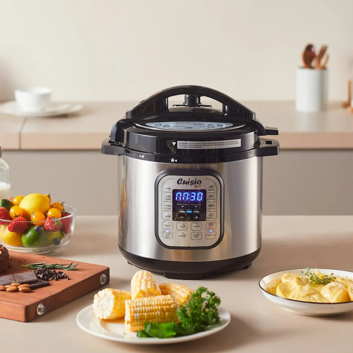 Le robot cuiseur cuisson haute et basse pression CUISIO_BOT vous permet aussi d’exploiter 17 programmes préréglés parmi lesquels on retrouve les fonctionnalités les plus usuelles comme la cuisson de riz, de soupe, de risotto, mais également les préparations en mode sauter, rôti, vapeur, viande sans oublier la confection de yaourt, la cuisson de ragoût, de multigrain …