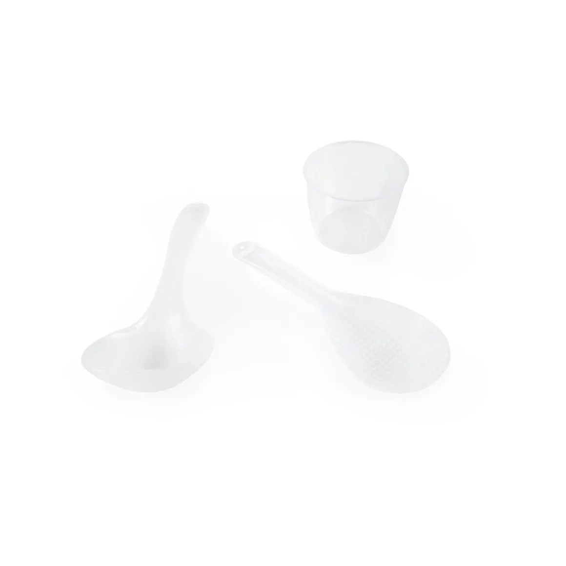 Pour ne rien gâcher, Kitchencook a également assorti son robot cuiseur CUISIO_BOT de tous les accessoires utiles : une grille vapeur, un réservoir d’eau condensé, une cuillère à riz, une cuillère à soupe et un gobelet doseur.