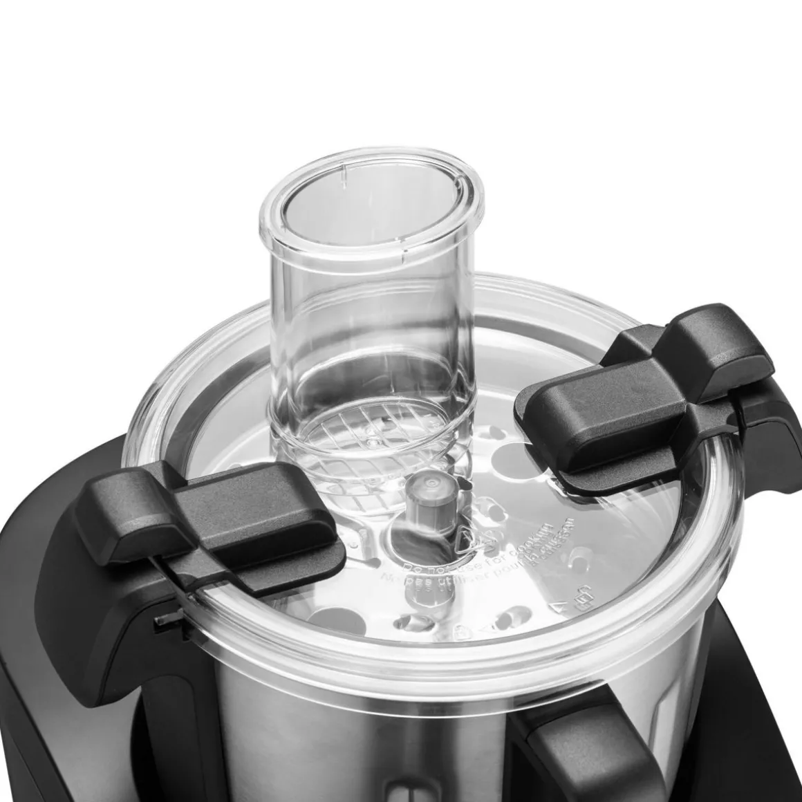 - Accessoires inclus : Verre doseur, bol en acier inoxydable avec 2 couvercles en plastique, panier vapeur, plateau vapeur, fouet, lame en acier inoxydable, spatule en silicone, poussoir, disque à râper/émincer en inox