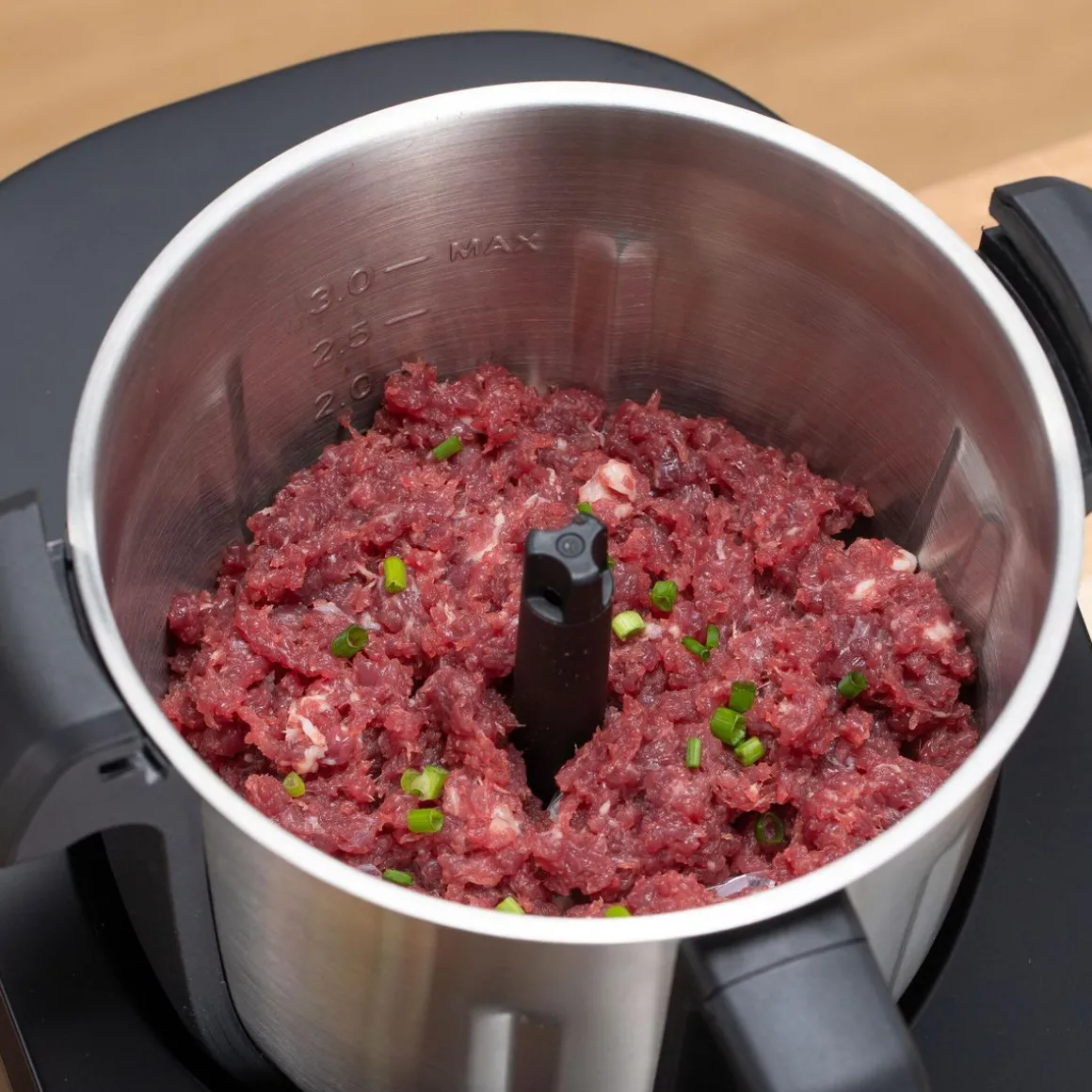 Le robot cuiseur multifonction CUISIO SPIRIT BLACK EDITION de Kitchencook est votre nouvel allié en cuisine, combinant puissance, polyvalence et connectivité pour des préparations culinaires faciles et rapides. Grâce à sa puissance maximale de 1300W (fonction cuisson : 1000W, fonction mixeur : 600W), ce robot est capable de mijoter, mixer, moudre, hacher, broyer, râper, trancher, émulsionner, fouetter, pétrir et cuire à la vapeur.