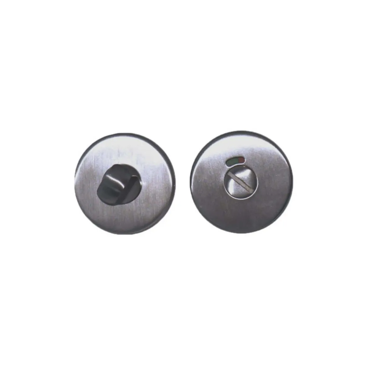 Rosaces rondes à condamnation avec voyant – pour porte coupe-feu – inox 304 brossé mat, ce modèle de rosace ronde en inox brossé mat est spécialement adapté aux béquilles coupe-feu et à un usage intensif