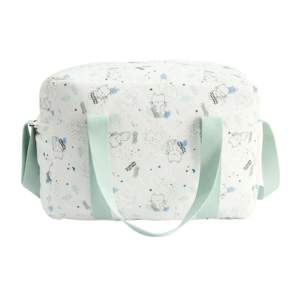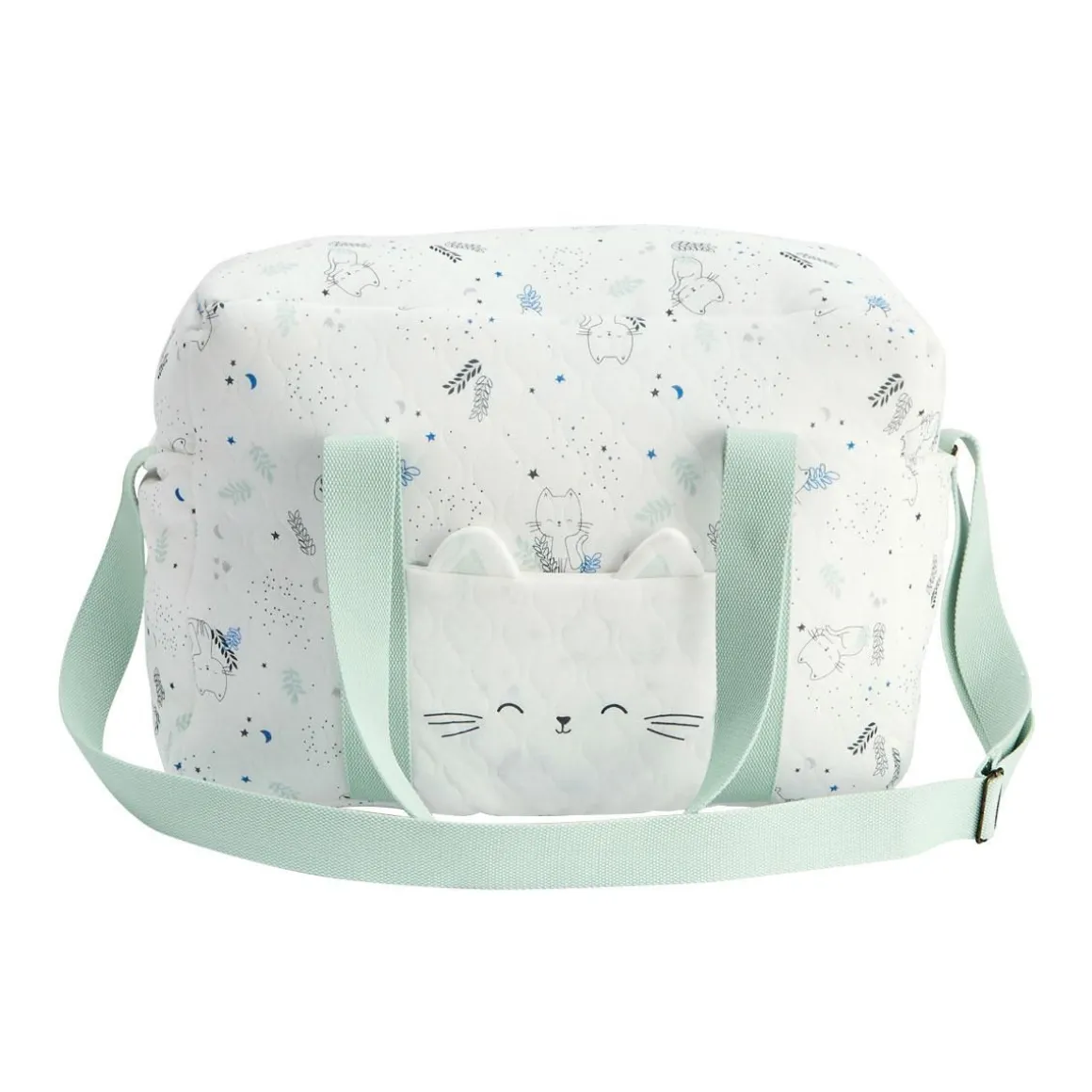 Adorable avec son petit chat et ses imprimés, ce sac à langer est idéal pour se déplacer avec bébé avec tout le nécessaire. Et on craque pour son côté pratique avec ses différentes poches et ses différentes façons de le porter : à la main ou en bandoulière. Alors, vous en pensez quoi ? Dimensions du sac à langer : 40 (L) x 19 (P) x 30 (H) cm Ouverture zippée et anse réglable Des poches plaquées à l’intérieur, pratiques pour ranger les affaires de bébé A l’extérieur, 2 poches plaquées sur les côtés et 1 sur l’avant Produit labellisé STANDARD 100 by OEKO-TEX ® (BJ020 189402 TESTEX)