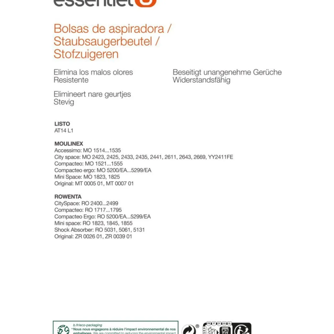 | Marque(s) compatible(s) Aspirateur | Rowenta, Moulinex, Listo | |