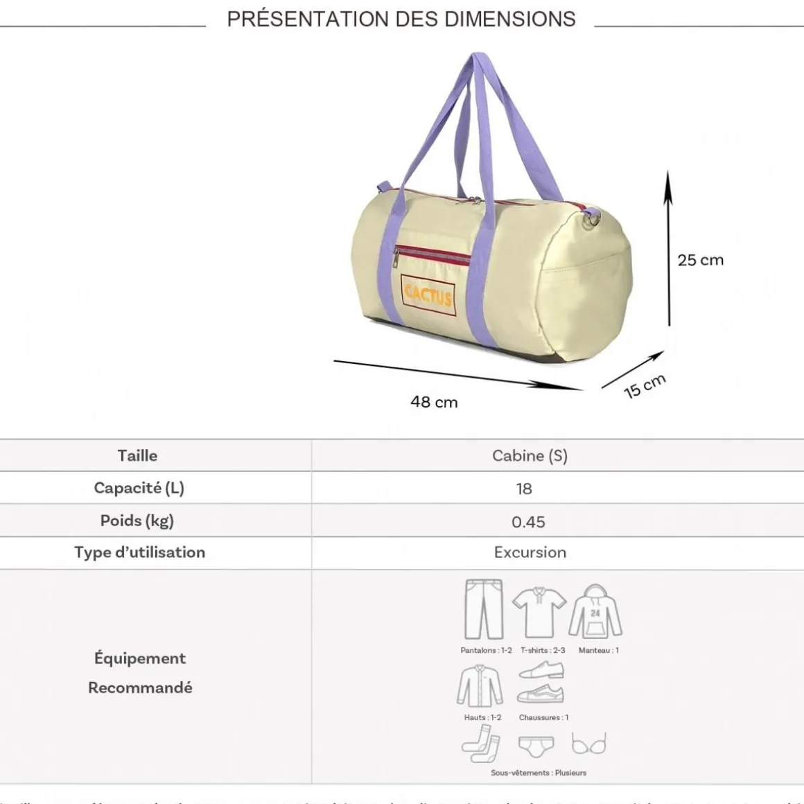 Les dimensions indiquées sont les dimensions extérieures des bagages, comprenant poignées, roulettes, pieds, poches latérales et autres éléments extérieurs.