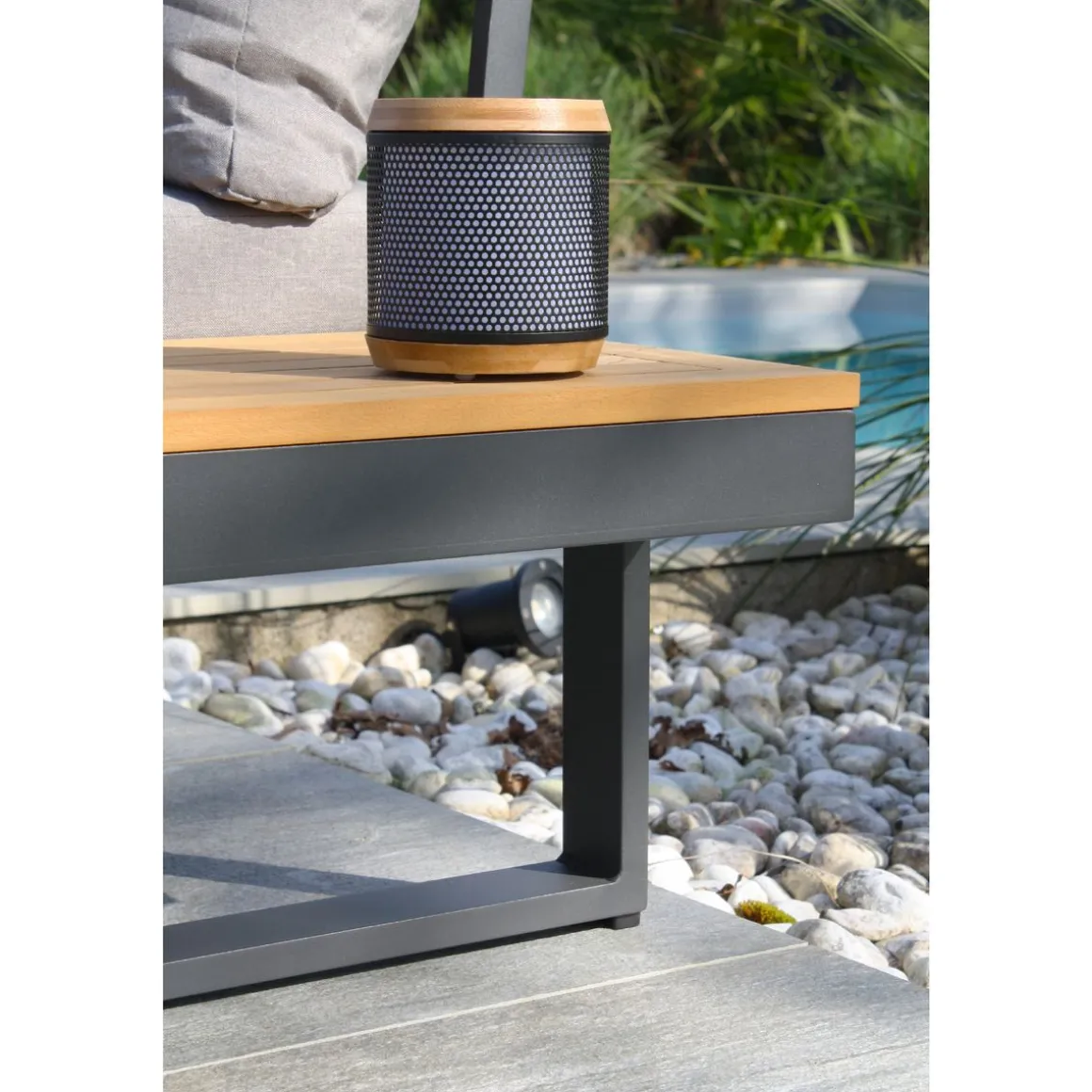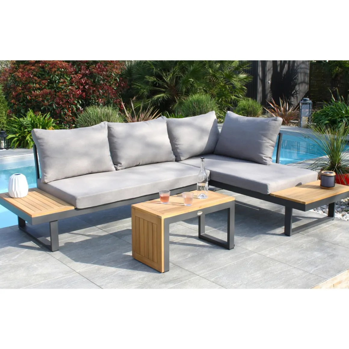 Salon bas de jardin – 4 places – Aluminium/bois – Anthracite – TOKYO