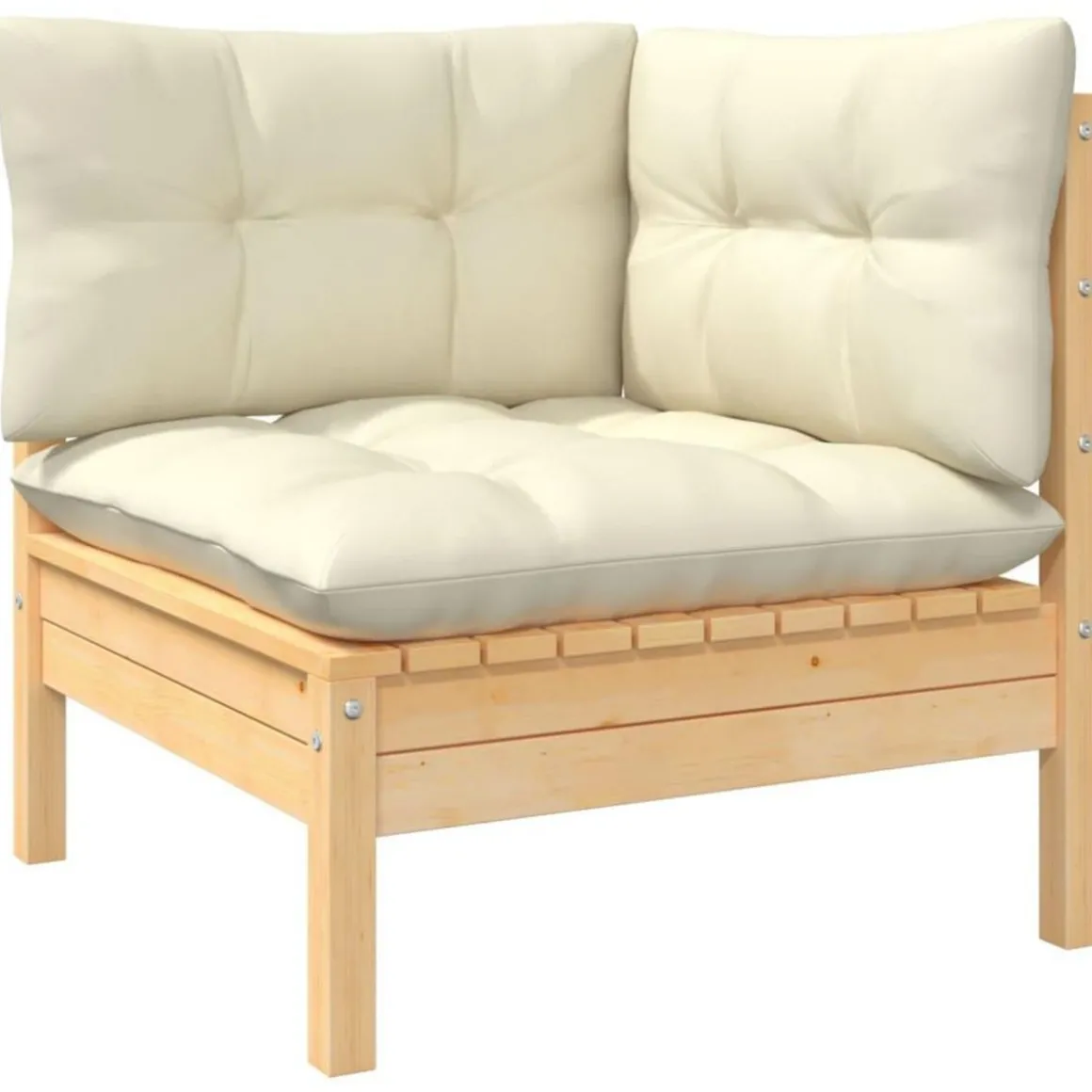 Le salon de patio est fabrique en bois de pin massif, ce qui le rend robuste et stable. Les coussins ajoutent un confort supplementaire. Vous pouvez le combiner avec d’autres segments modulaires pour creer vos propres configurations de salon de jardin !