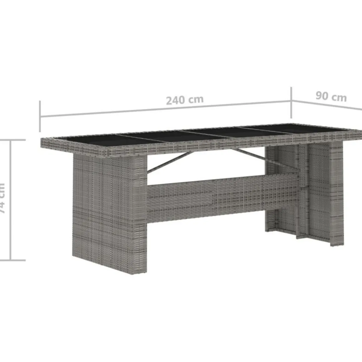 - Dimensions de la table : 240 x 90 x 74 cm (L x l x H)
