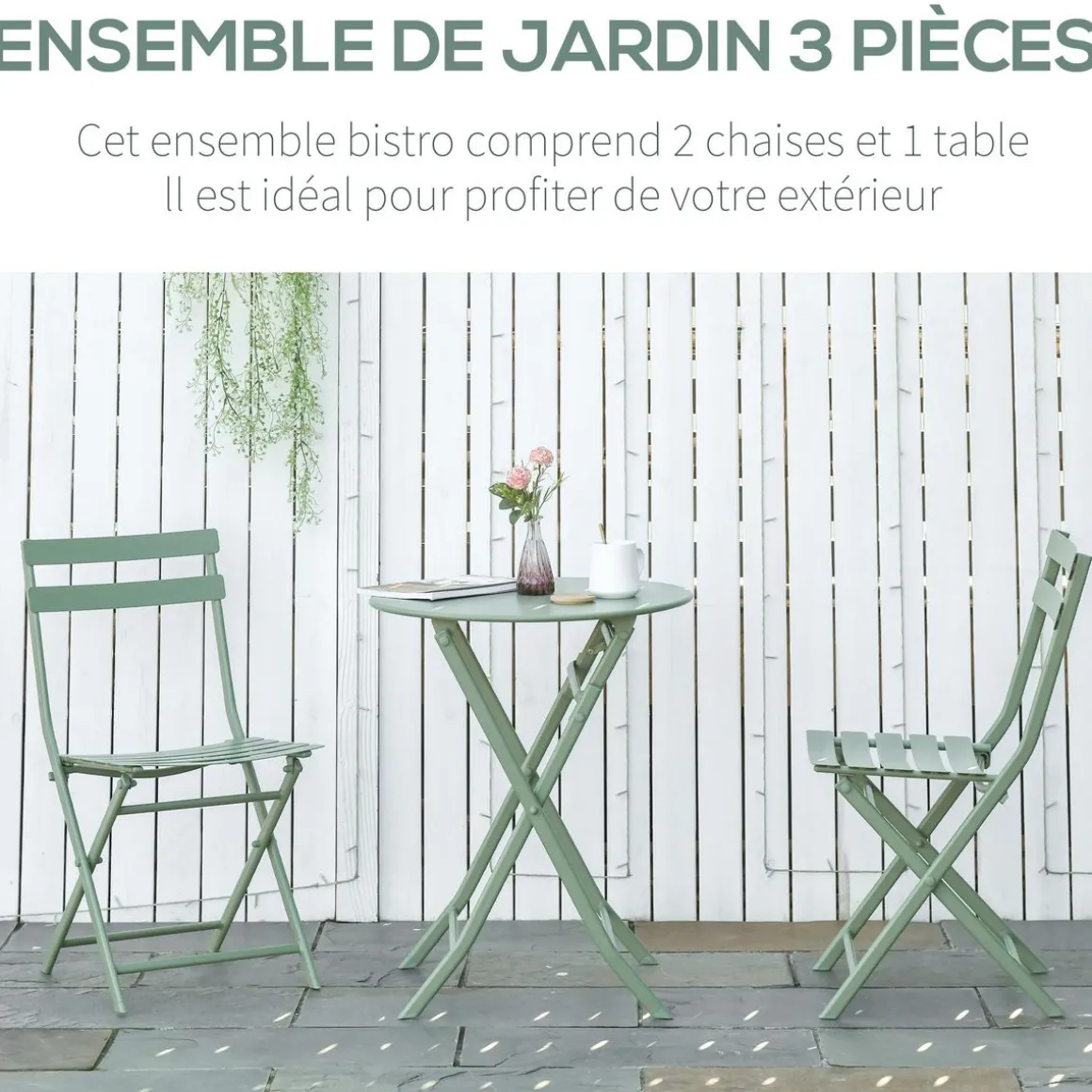 – Ensemble salon de jardin bistro 2 personnes doté d’un total de 3 pièces : 2 fauteuils, 1 table ronde