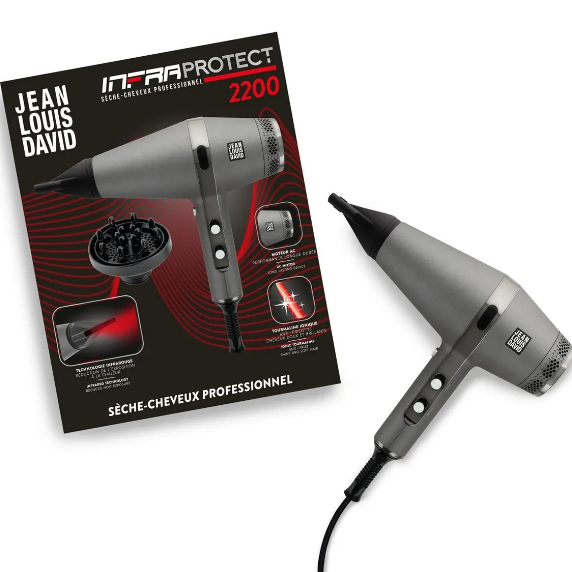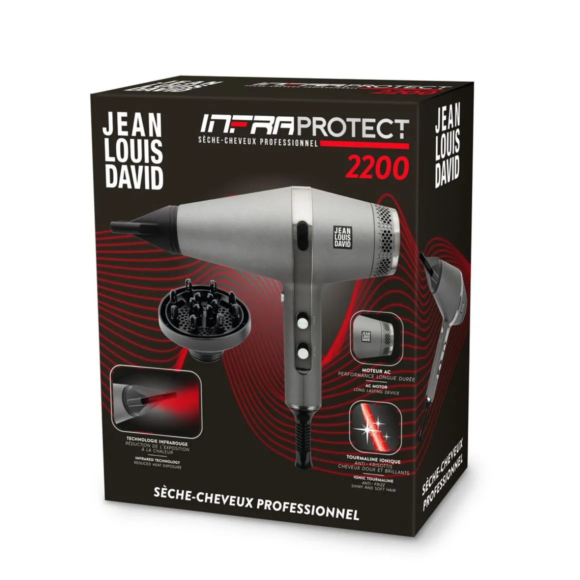Modèle professionnel : le sèche-cheveux professionnel INFRAPROTECT 2200W de JEAN LOUIS DAVID vous permet une utilisation sur mesure avec 3 températures et 2 vitesses, ainsi qu’une fonction air froid instantané pour fixer la coiffure durablement.