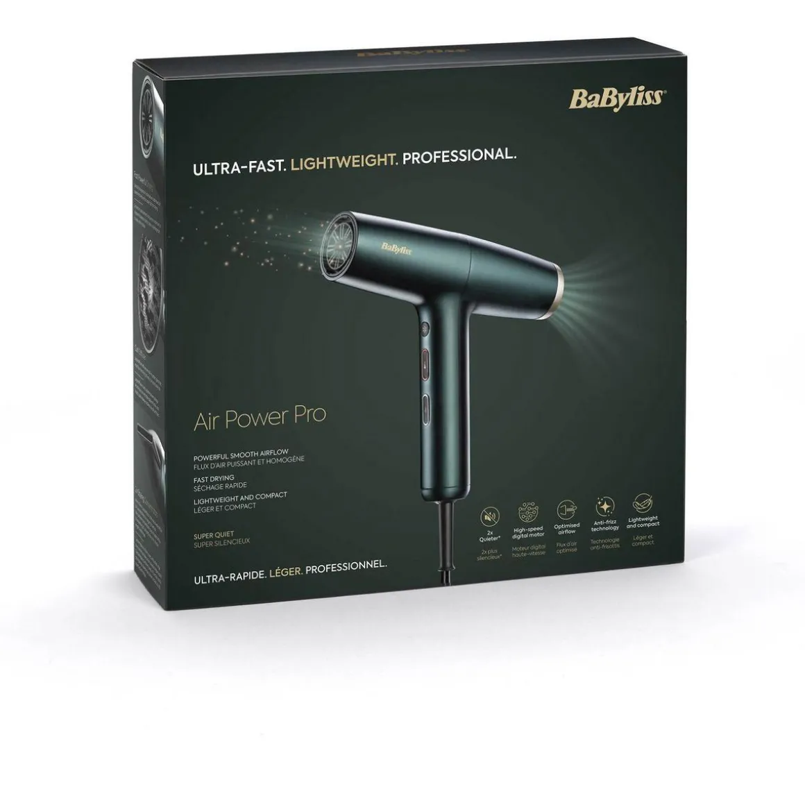 | Moteur | numérique, le plus puissant. Il est particulièrement adapté au lissage des cheveux indisciplinés, il offre une précision de réglage, un niveau sonore réduit et un poids léger comparé à sa puissance élevée | |