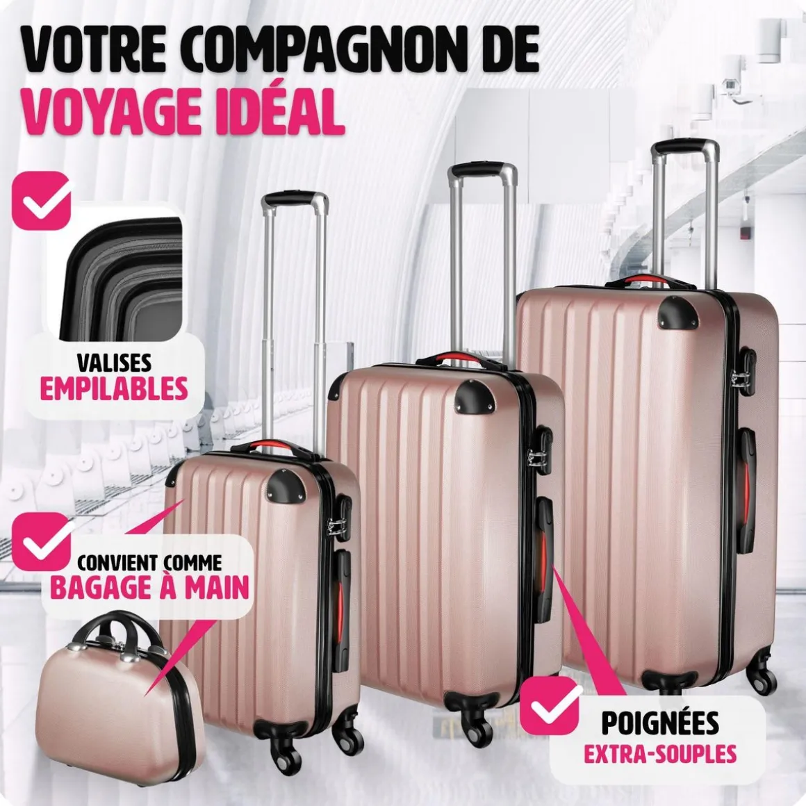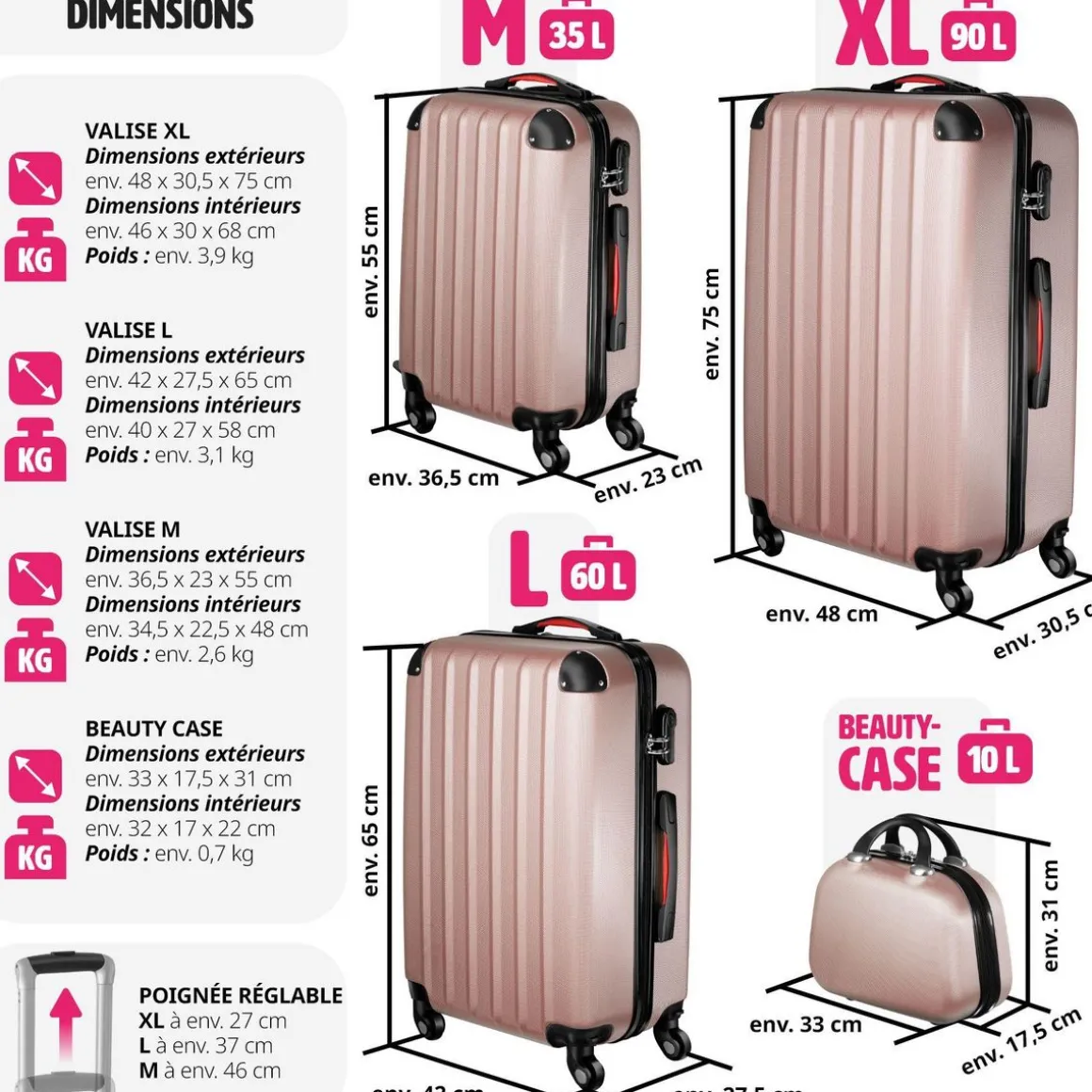 - Lot de 3 valises gigognes avec vanity aspect métallisé