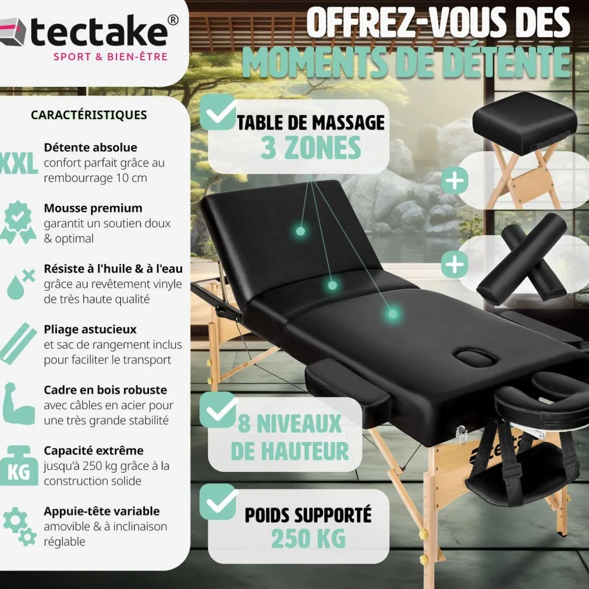 Découvrez notre table de massage portable pliante à 3 zones avec accessoires, conçue pour offrir une expérience de massage inégalée. Avec un rembourrage épais de 10 cm, cette table de massage assure un confort supérieur pendant les séances de relaxation. Que vous soyez un amateur de massages ou que vous cherchiez simplement à améliorer votre bien-être à domicile, cette table est le choix idéal.