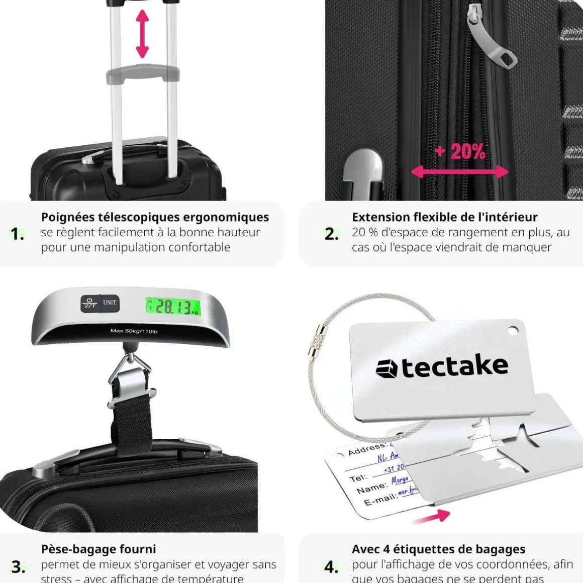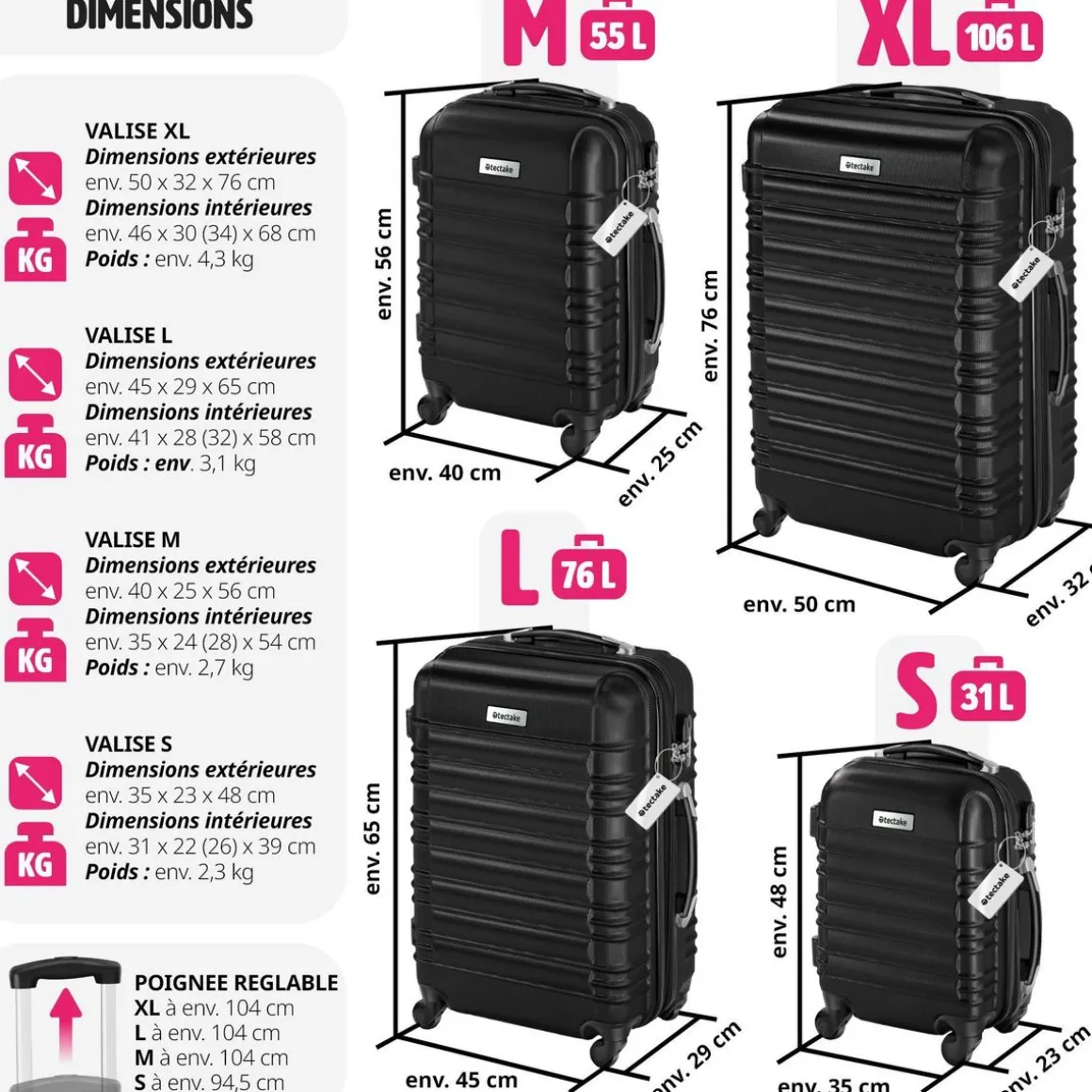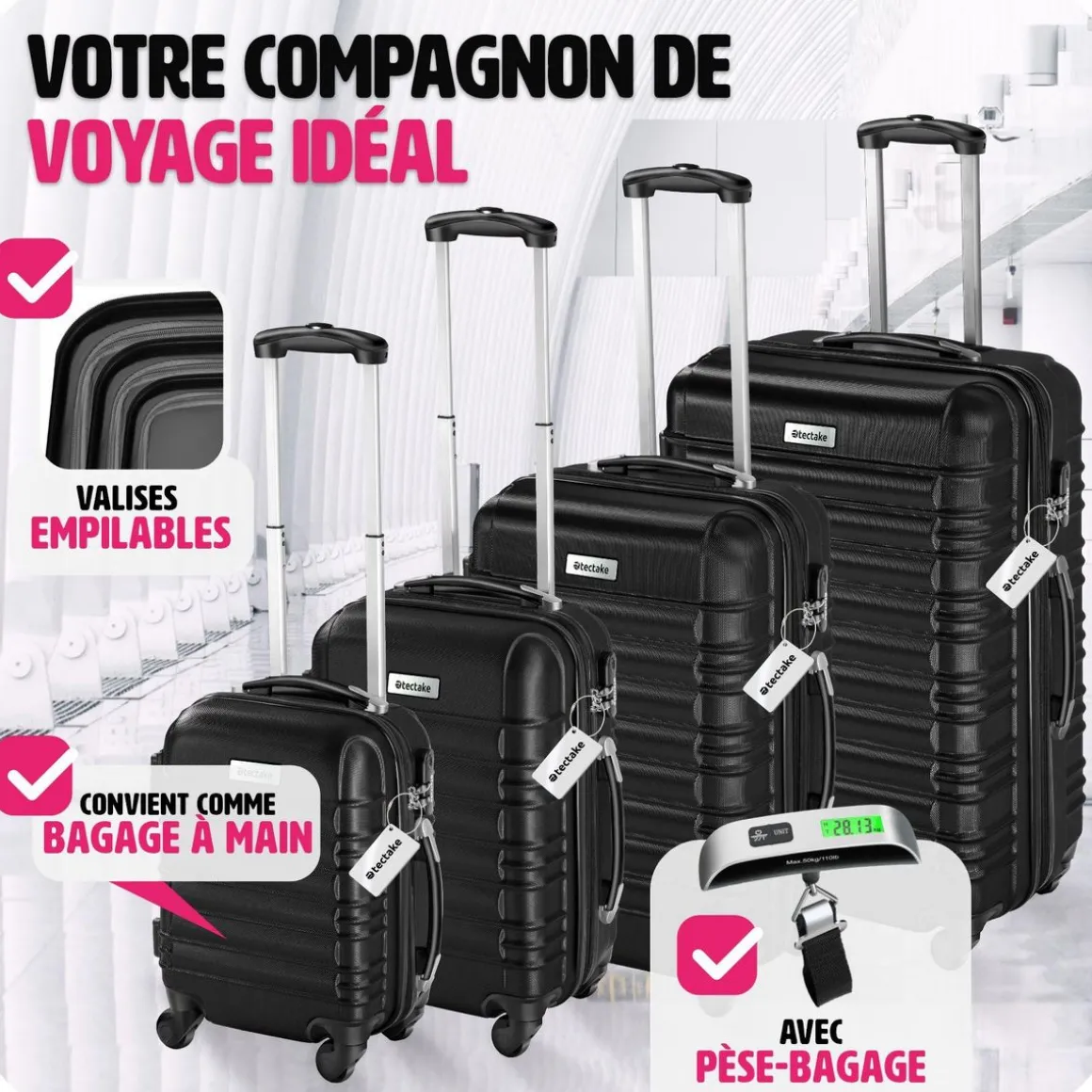 - Set de 4 valises composé de trolleys de différentes tailles, empilables les uns dans les autres