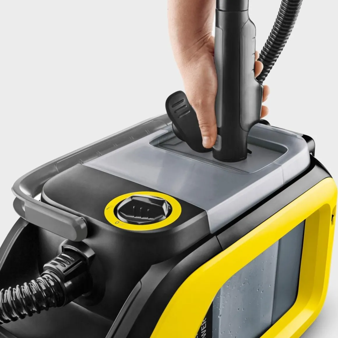 | Comment ça marche ? | La solution de nettoyage est injectée sous pression dans les tissus avant d’être aspirée avec la saleté. Cette action répétée au coeur des fibres permet de détacher et nettoyer. La gachette sur la brosse vous permet de réguler le jet de solution nett | |