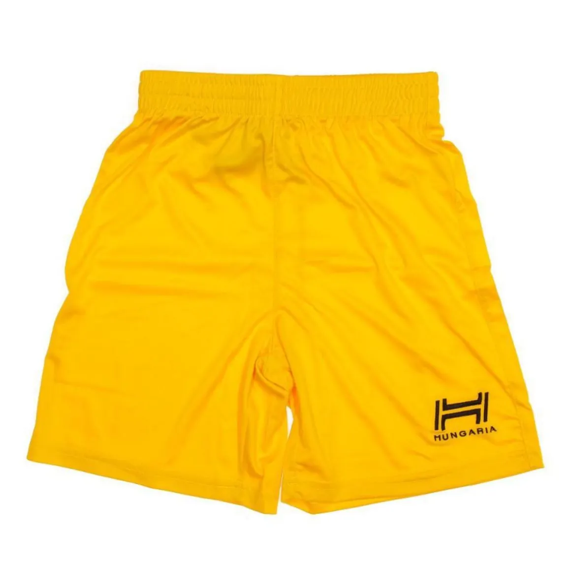 Short jaune pour garçon de la marque Hungaria ! Ceinture élastique avec cordon de serrage Logo Hungaria brodé en noir sur la cuisse gauche Composition : 100% polyester