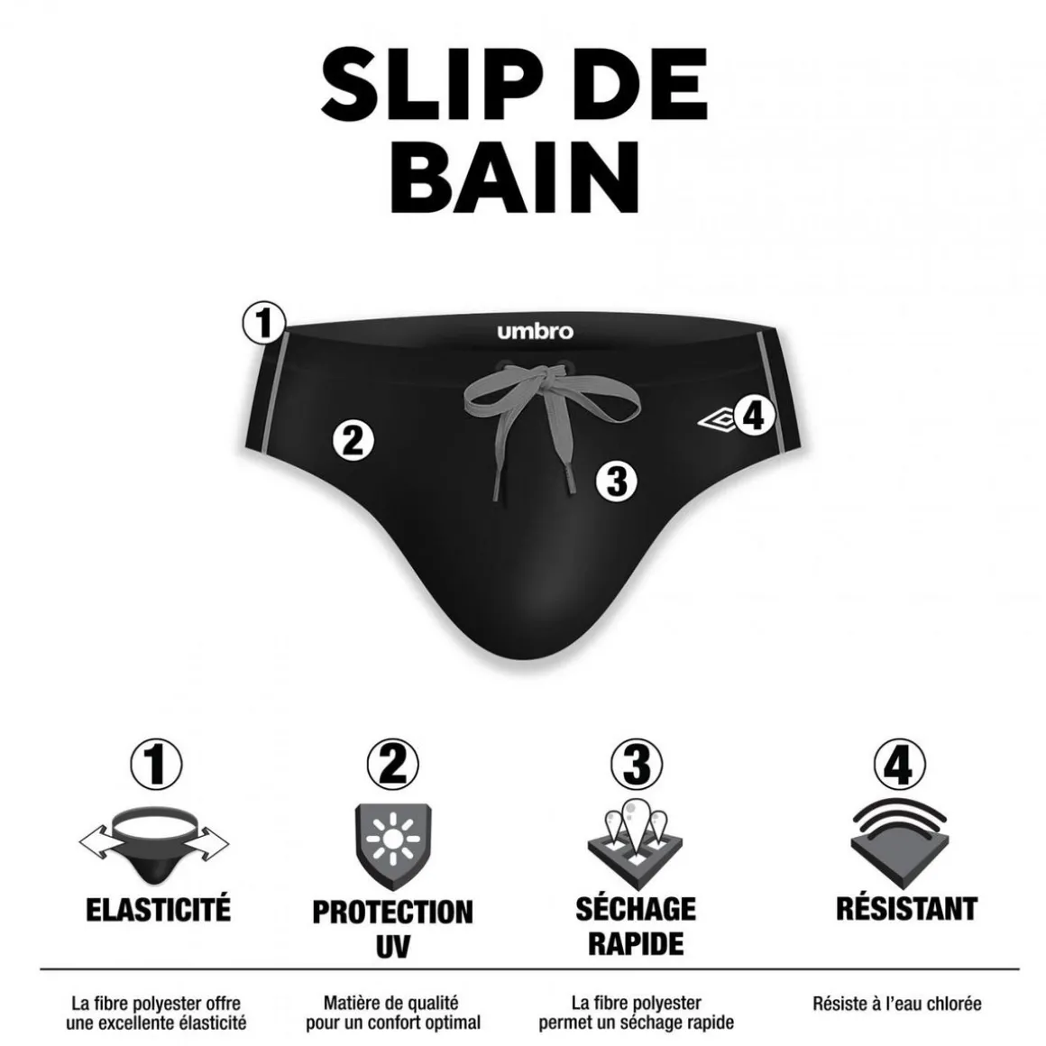 Optez pour le tout nouveau slip de bain pour homme signé Umbro. La marque vous propose un slip sobre avec une touche de couleur !