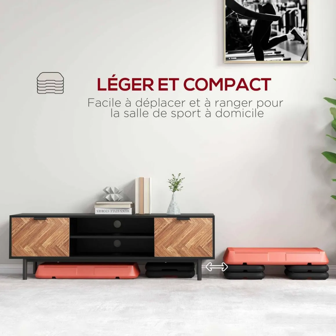 – Stepper polyvalent, permet de faire des exercices de Fitness ou d’Aerobic (step-up, push-up, squats, etc.)