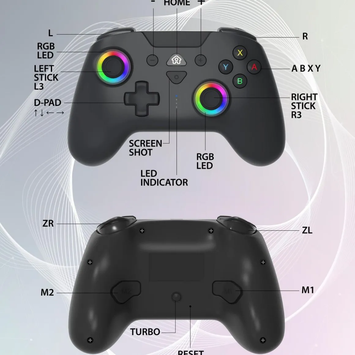 Vous pensez que certaines touches de la manette Switch pro d’origine ne correspondent pas à vos habitudes de jeu La manette Switch sans fil LED avec ses boutons e-Sports M1 et M2 programmables supplémentaires à l’arrière vous offre plusieurs utilisations. Vous pouvez régler ces boutons à boutons A/ B/ X/ Y ou R/ L/ ZR/ ZL ou L3/ R3, vers le haut et bas, touches gauche et droite, pour vous offrir une expérience de jeu plus efficace. La manette est équipée de capteurs de mouvements (accéléromètre, gyroscope), qui peuvent détecter chacun de vos mouvements dans le jeu, avec une réponse rapide et sans décalage.