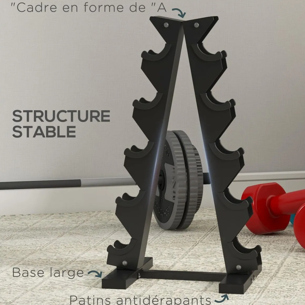 – Support d’haltères avec pieds larges et patins antidérapants pour une meilleure stabilité