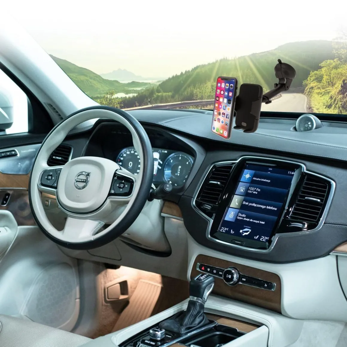 | Avantages | Support voiture motorisé – 3 in 1 : Pare-brise, tableau de bord et grille d’aération – Compatible tout smartphone jusqu’à 6 – Ouverture automatique – Bras télescopique ajustable – Tête rotative à 360° – Chargeur allume-cigare 2xUSB inclus | |