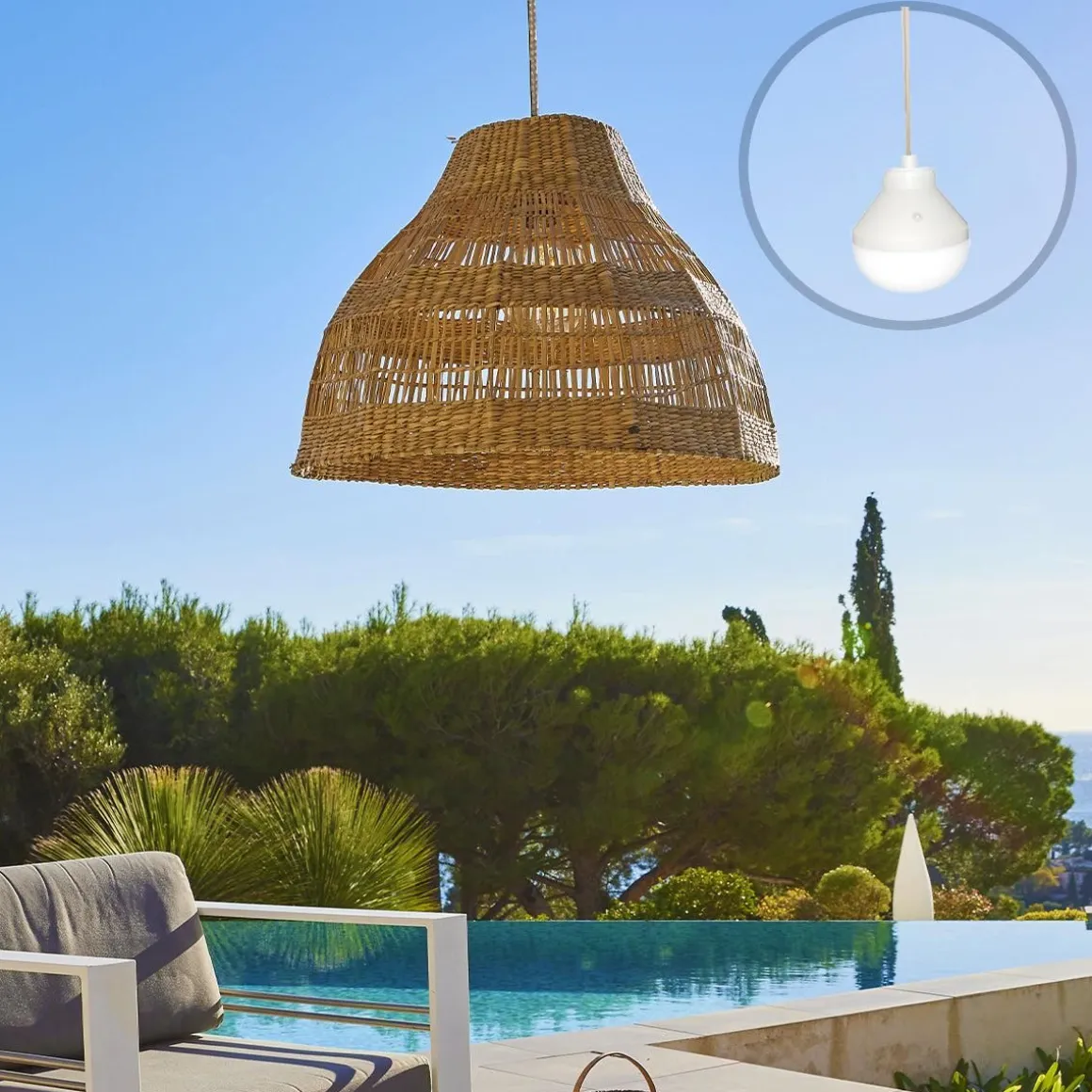 - NOMADE : La suspension MERIDA NOMAD est livrée avec l’ampoule LED autonome LYS (blanc et multicolore) et peut être suspendue n’importe où à l’aide de sa corde naturelle. La plaque métallique permet de positionner l’ampoule aimantée dessous ou de l’accrocher grâce au crochet fourni. L’ampoule nomade LYS est livrée avec une télécommande qui permet de la commander à distance. L’abat-jour MERIDA NOMAD peut être également utilisé avec une monture électrique standard. A vous de choisir selon l’ambiance souhaitée !
