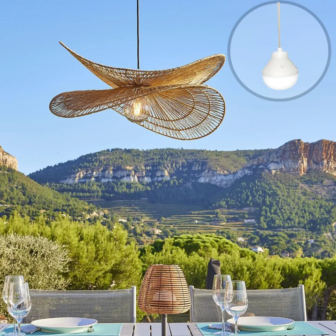 - NOMADE : SOLARA NOMAD est livrée avec l’ampoule LED autonome LYS (blanc et multicolore) et peut être suspendue n’importe où à l’aide de sa corde naturelle. La plaque métallique permet de positionner l’ampoule aimantée dessous ou de l’accrocher grâce au crochet fourni. L’ampoule nomade LYS est livrée avec une télécommande qui permet de la commander à distance. L’abat-jour SOLARA NOMAD peut être également utilisé avec une monture électrique standard. A vous de choisir selon l’ambiance souhaitée !