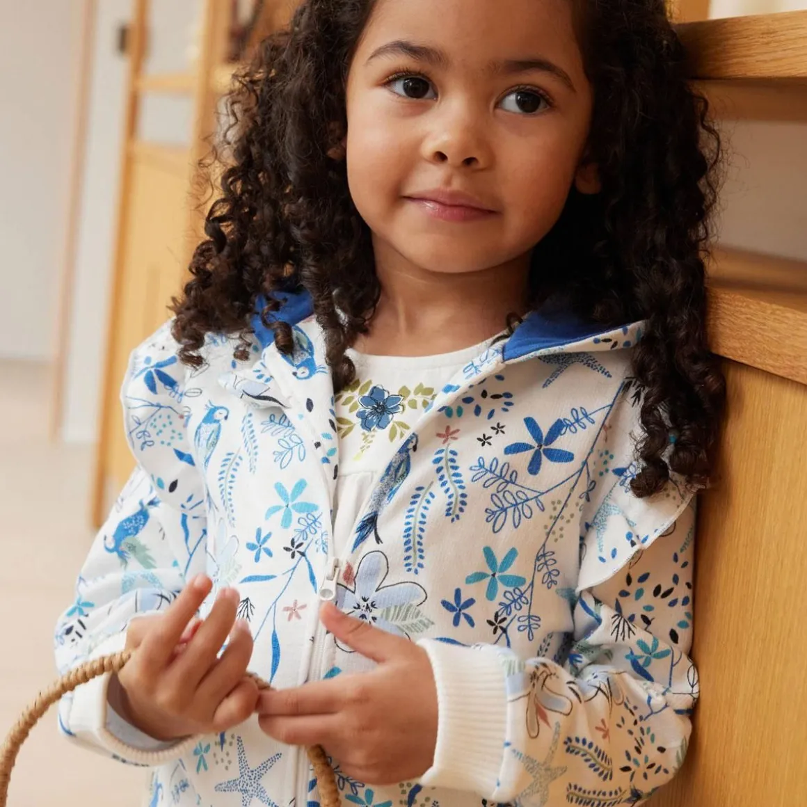 Un superbe sweat à capuche parfait pour la mi-saison. Il s’adapte à toutes les tenues et offre un petit look sportswear à votre petit chou. On adore son total look all-over ! Produit labellisé STANDARD 100 by OEKO-TEX ® (BJ020 189402 TESTEX) Des volants sur les épaulettes associés au côté sportswear de la capuche